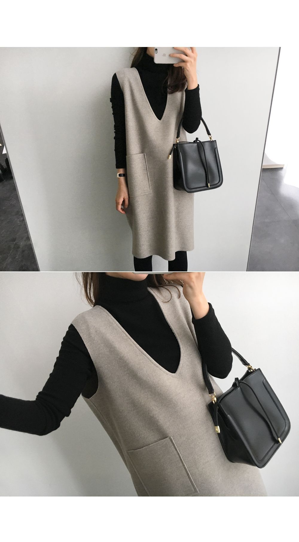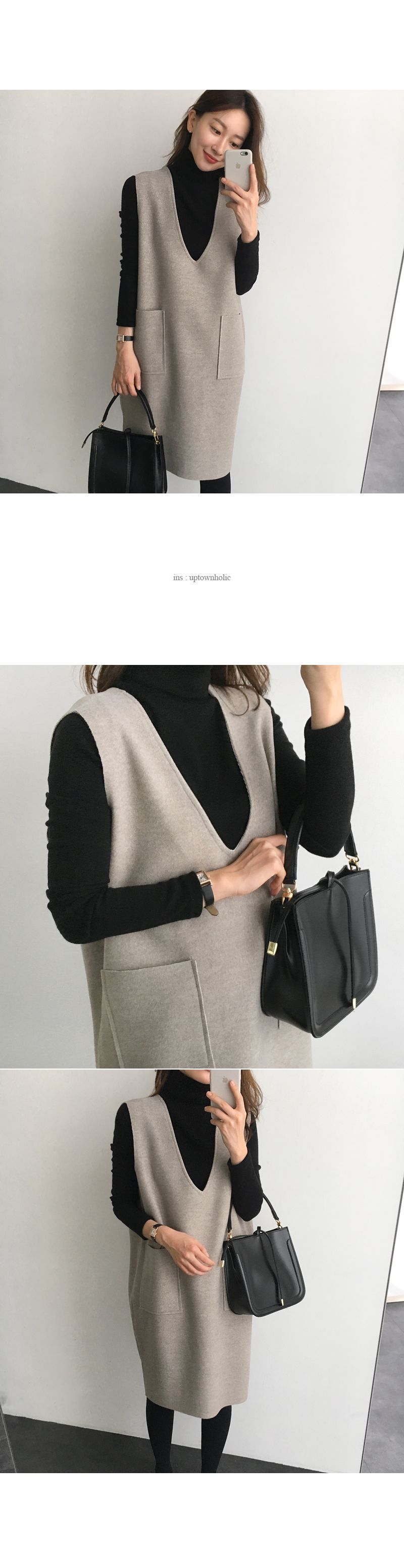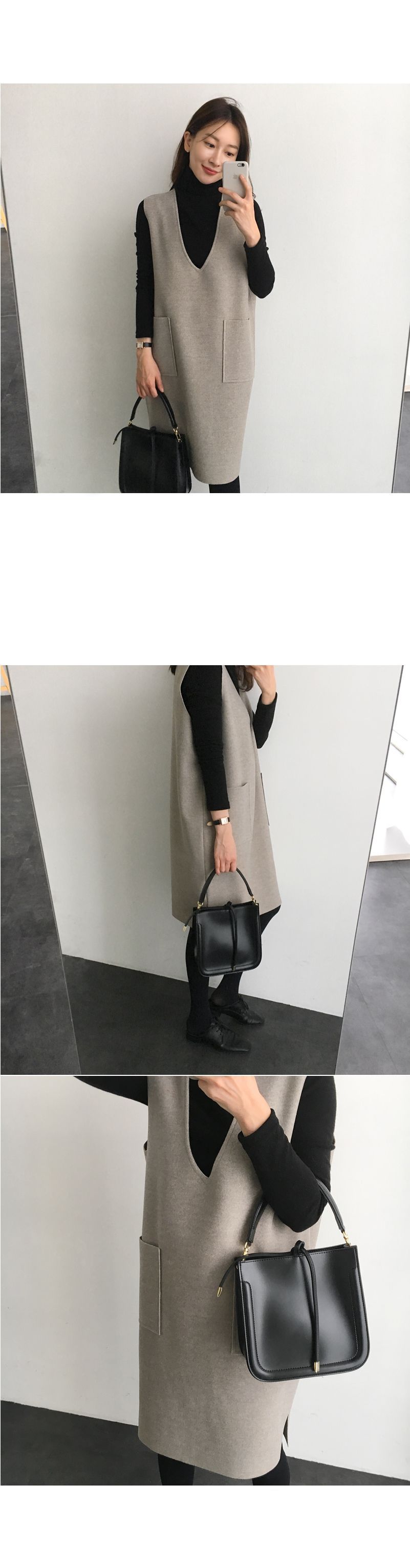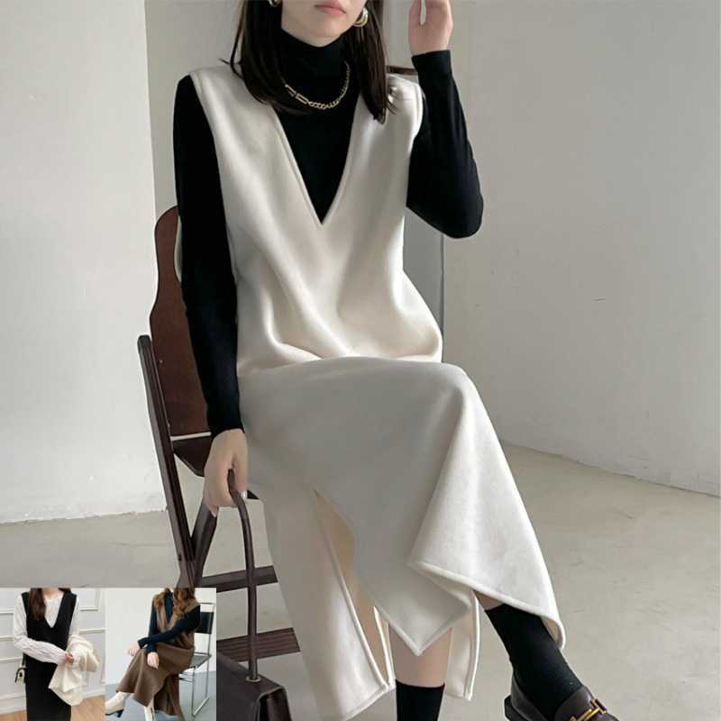Vネックベストドレス秋冬新作韓国風ミドル丈ベストスーツツーピースファッションカジュアル