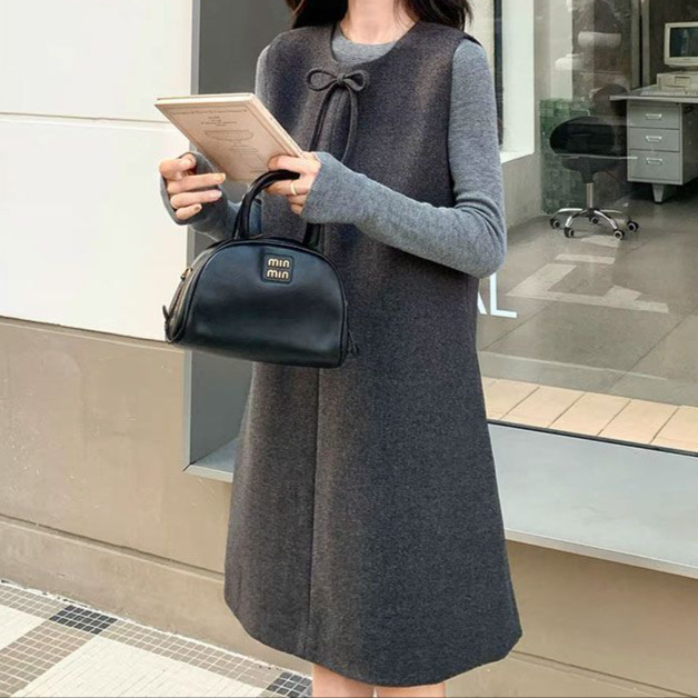 ウールベストワンピース 秋冬2026新作 韓国風 ミドル丈 両面ウールベストワンピース スーツワンピース ツーピースセット