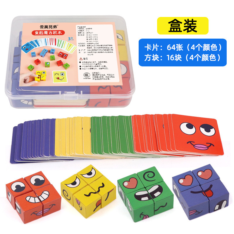 你哭我笑儿童变脸魔方积木玩具跨境亲子笑脸木质桌面游戏表情魔方