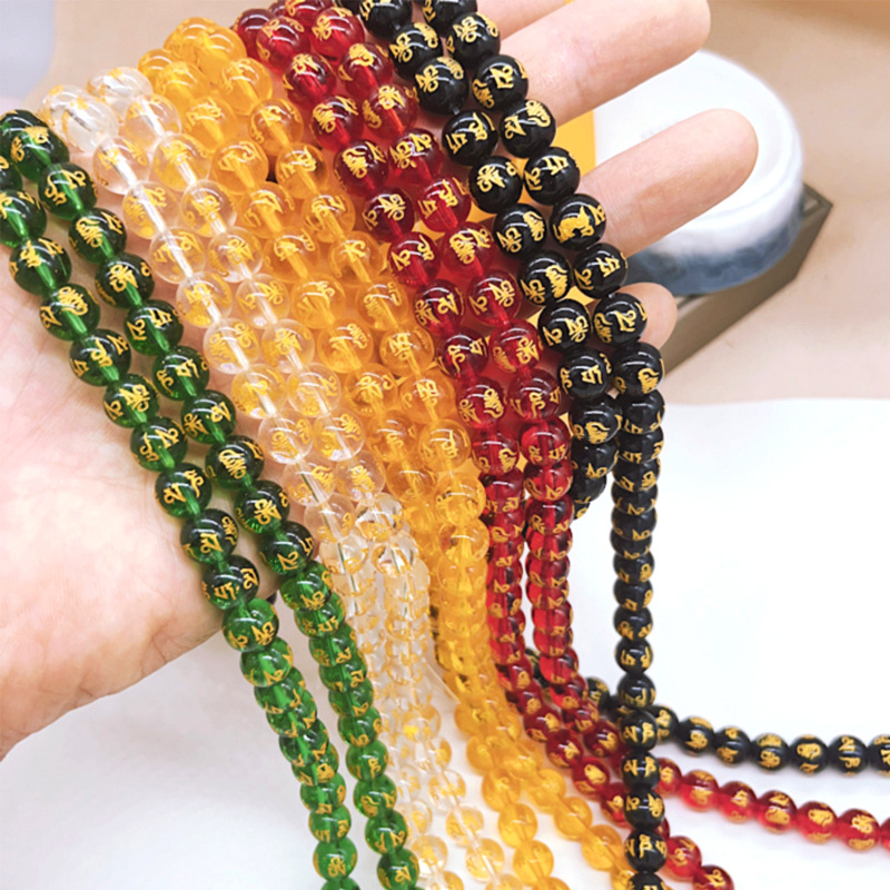 天然水晶箔押し金黒瑪瑙六字真言散珠フロスト紅瑪瑙六字真言アクセサリーアクセサリー