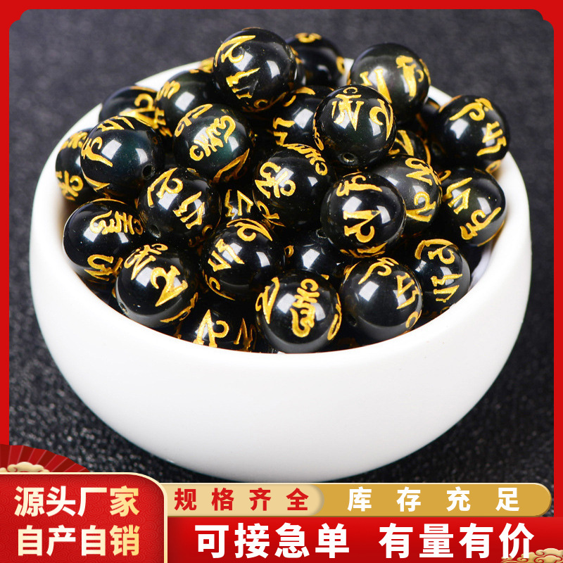 黒曜石六字真言円珠守護神散珠diy手串ブレスレット部品手作りアクセサリー卸売り