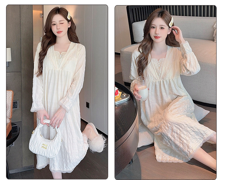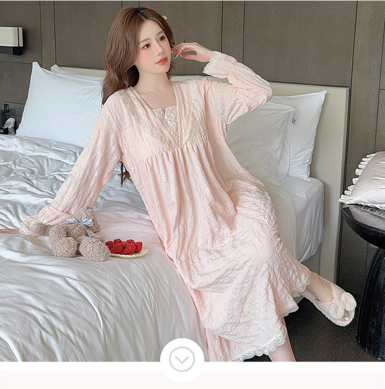 夏の起爆新商品パジャマ女寝スカート長袖純色レースセクシー純欲風ミディアムルーム服