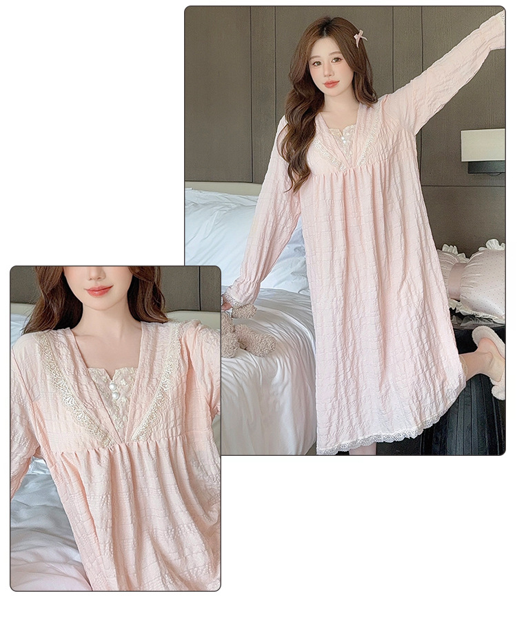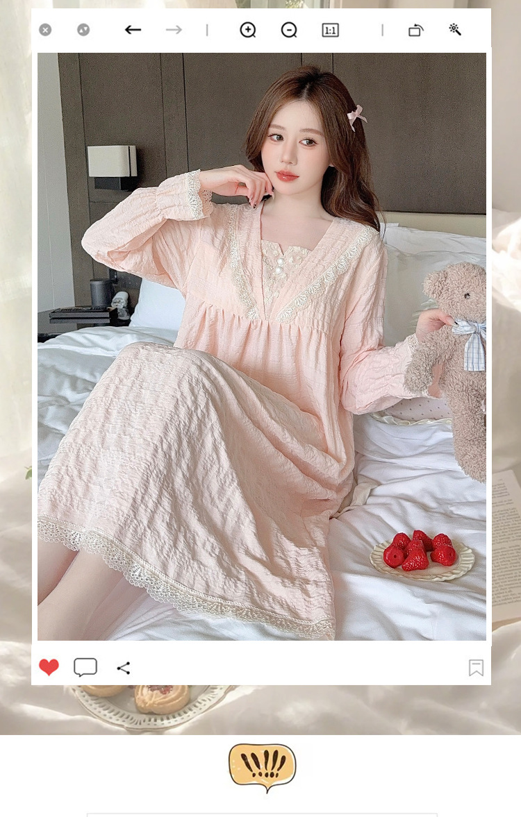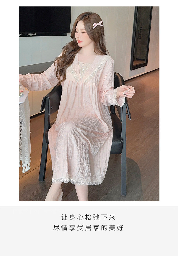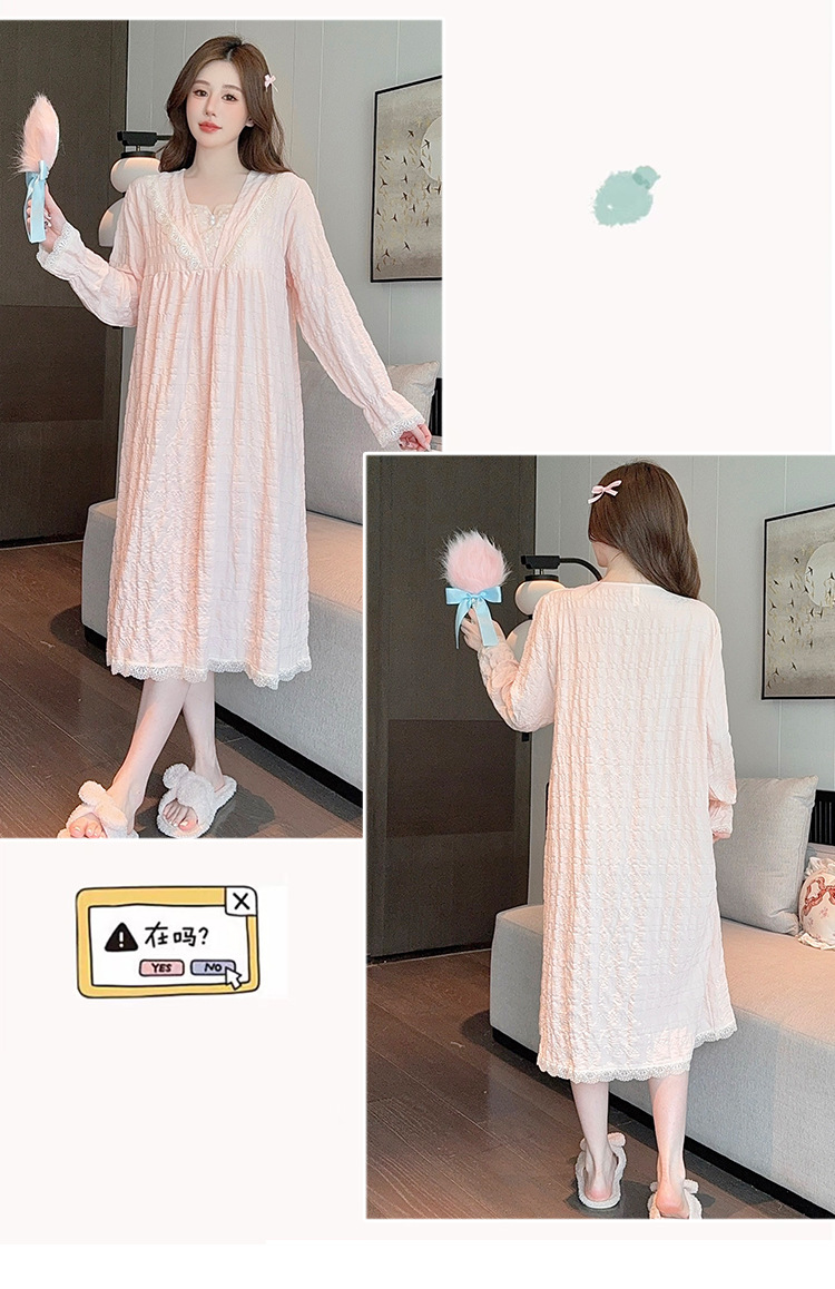 パジャマの女性の春と秋の新型の胸付きの長袖の寝スカートの甘い香りの風は太っている大きいサイズの部屋の服をプラスして外に着ることができます。