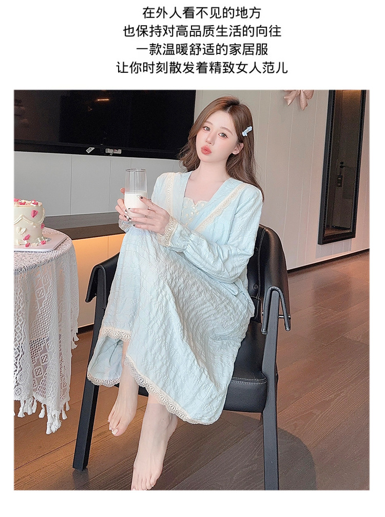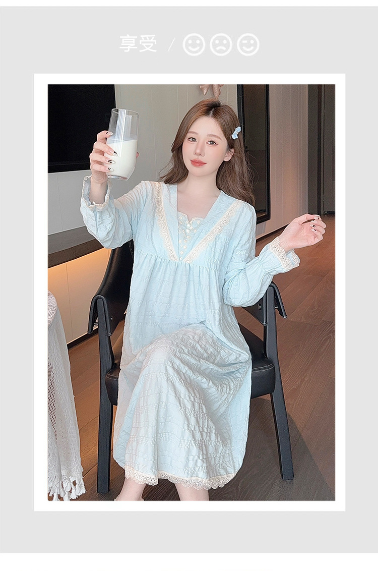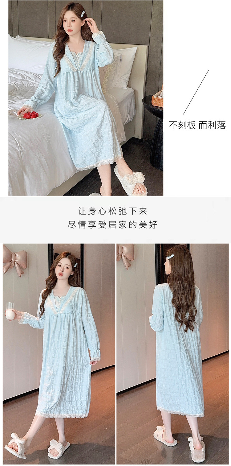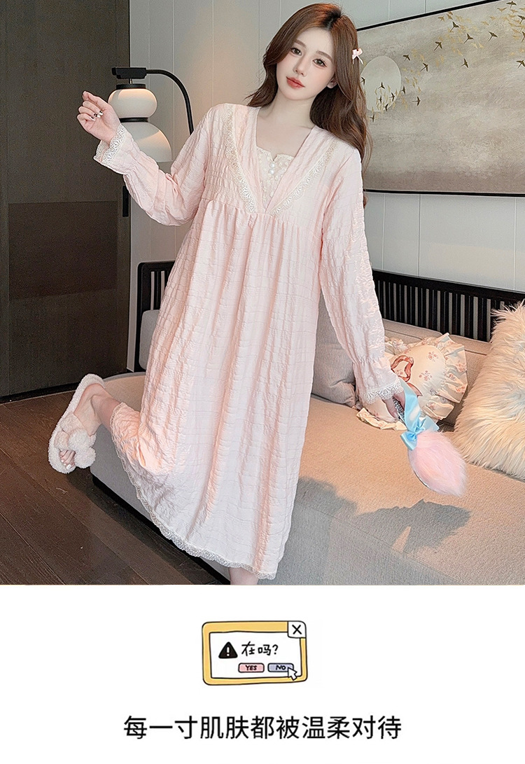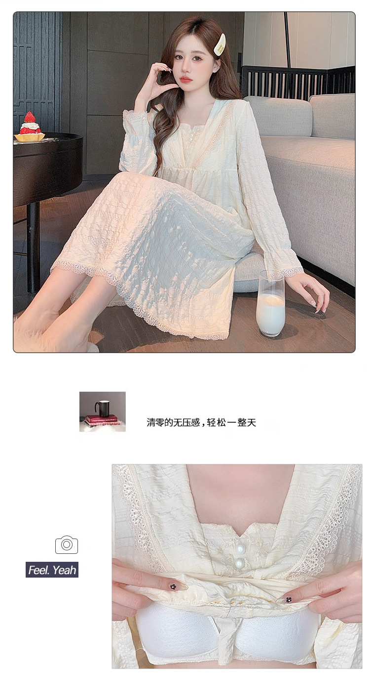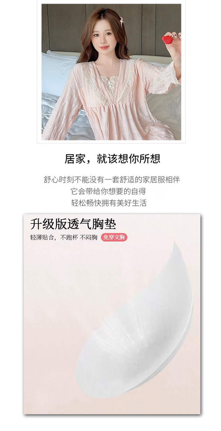 带胸垫睡裙女款春秋季2025新款长袖花朵提花棉蕾丝宽松公主家居服