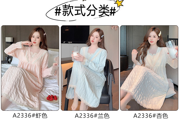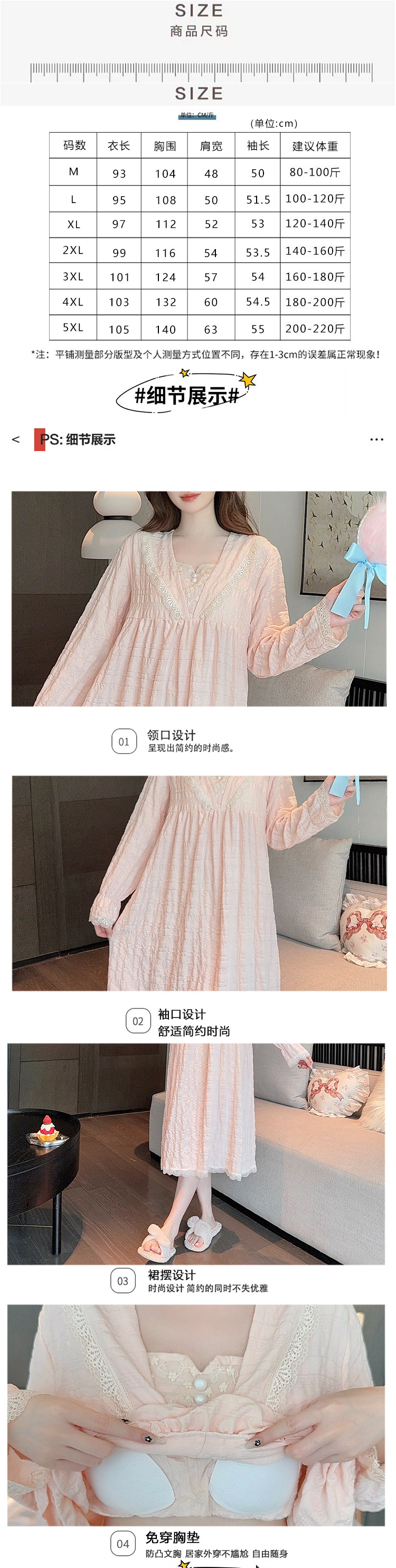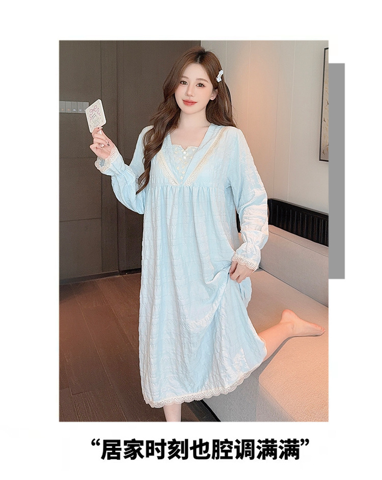 云朵棉睡衣女春秋季甜美带胸垫长袖中长睡裙加肥大码220斤家居服