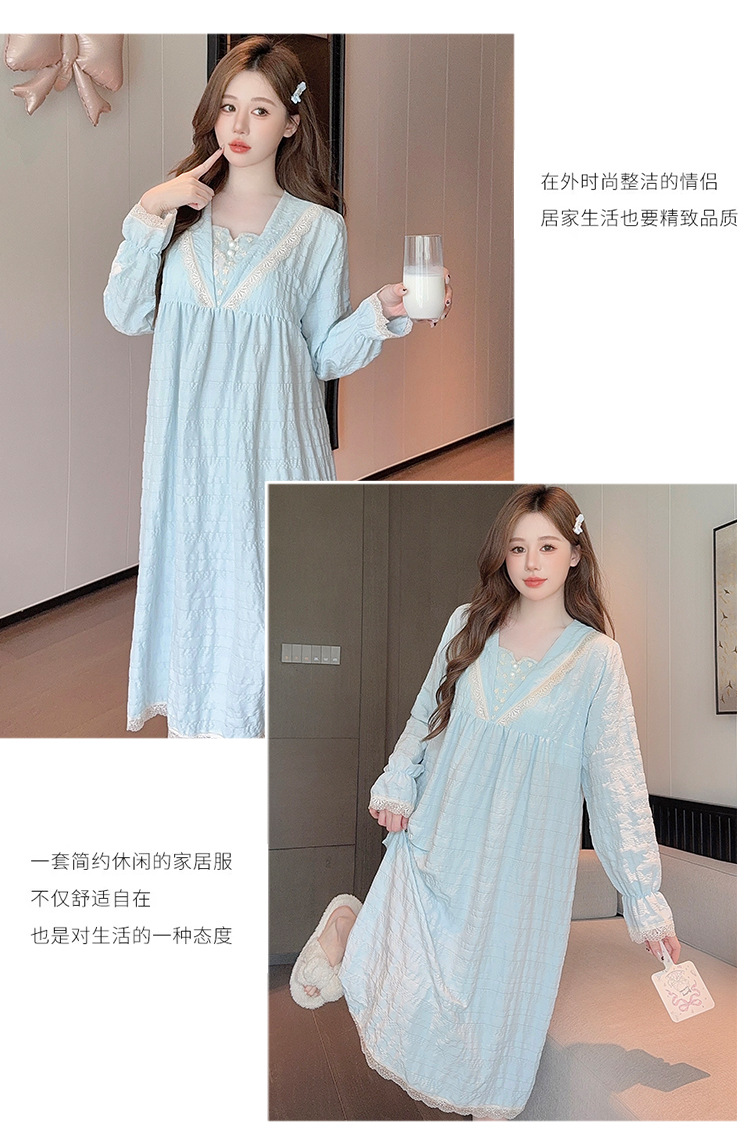 胸パッド付きパジャマ女性春秋新作ジャカード綿長袖スカートゆるいサイズ220斤太ったMMホームウェア