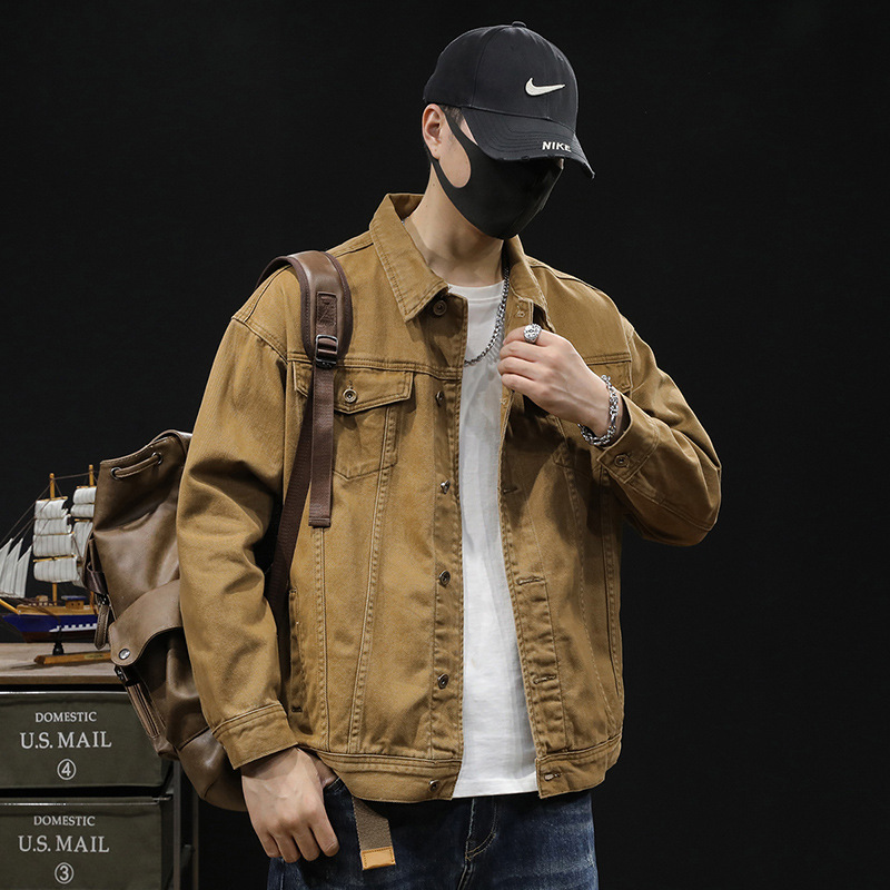アメリカの重いポンドのデニムのコートの男性の春秋の新型の潮牌の立体の双ポケットの重いポンドの工装の上着のジャケット