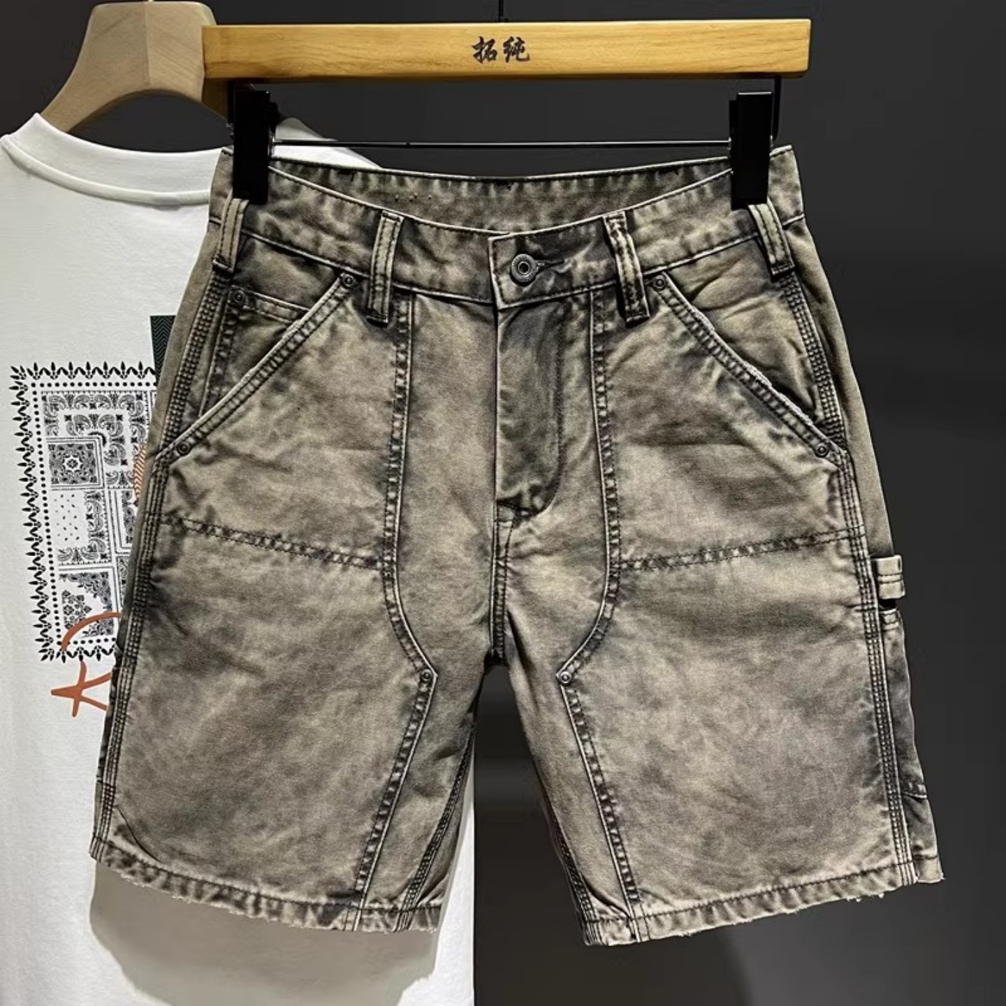 アメリカンレトロトレンディデニムショートパンツサマーハイエンドグレーカジュアル5点パンツハンサムトレンドルーズストレートミッドパンツ