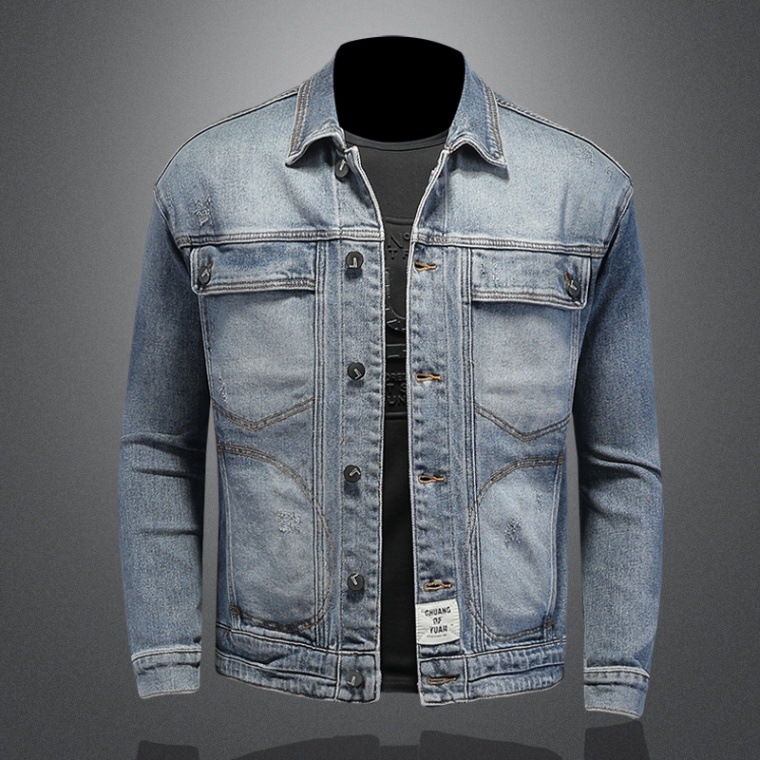 デニムジャケット男性春秋新型高弾力スリム襟高品質ファッションファッションファッション個性百合デニム