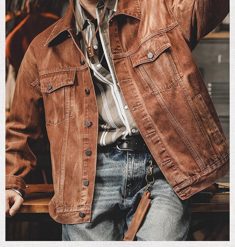 美式复古宽松507赤耳丹宁牛仔夹克 阿美咔叽洗水外套男