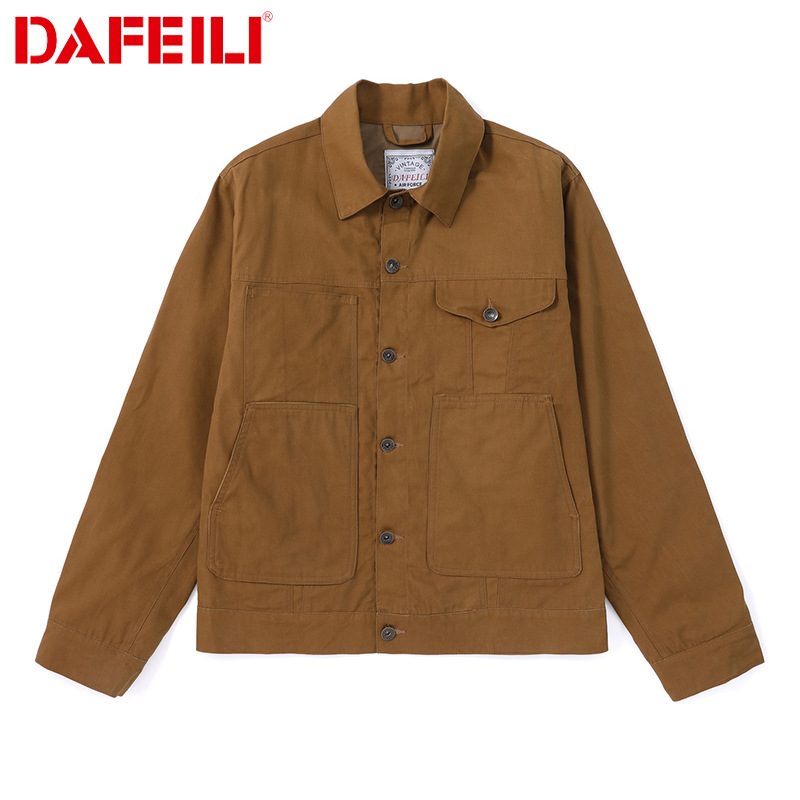 美式工装巡洋舰夹克长袖纽扣男春秋季翻领复古多口袋油蜡帆布外套