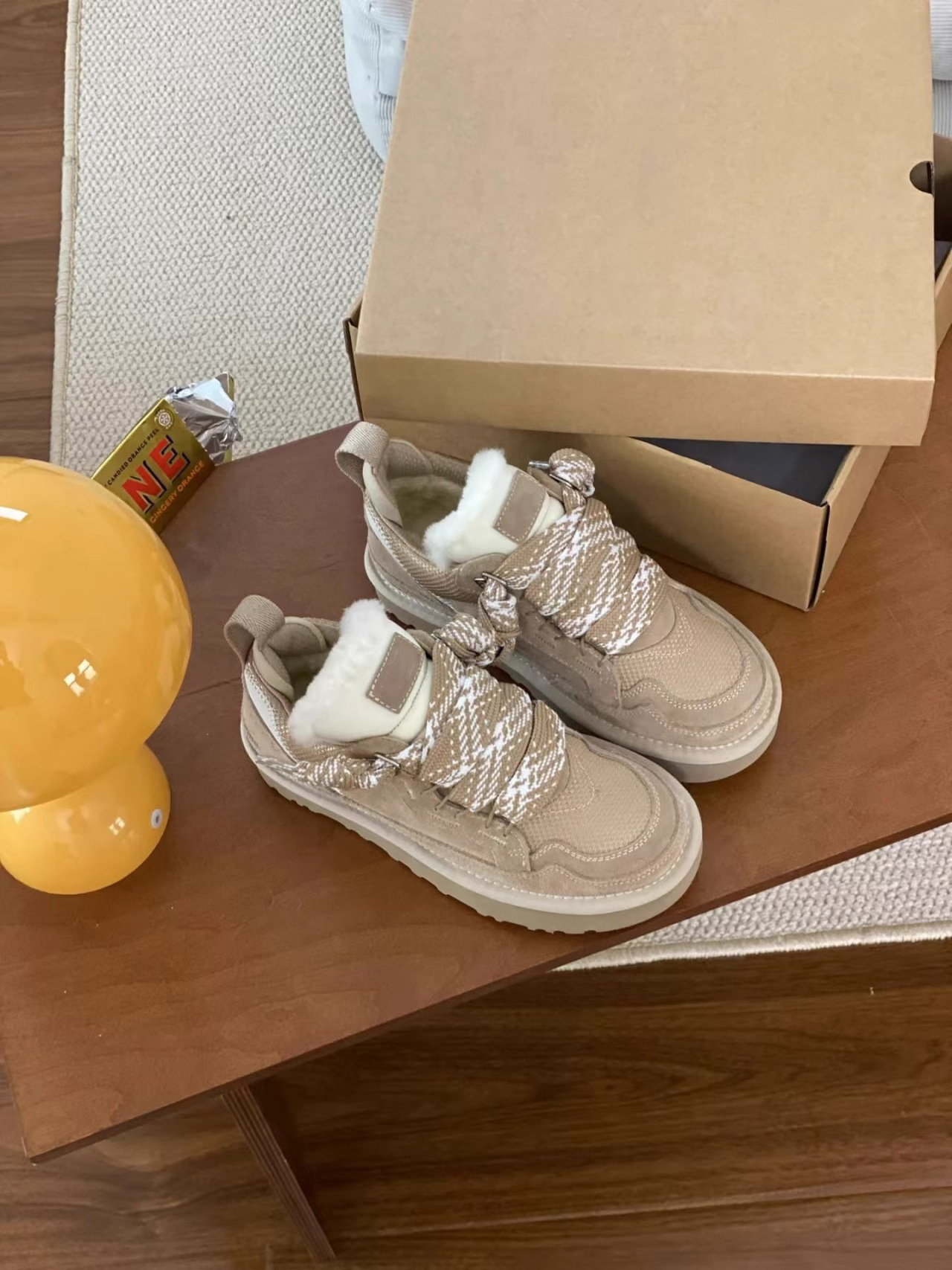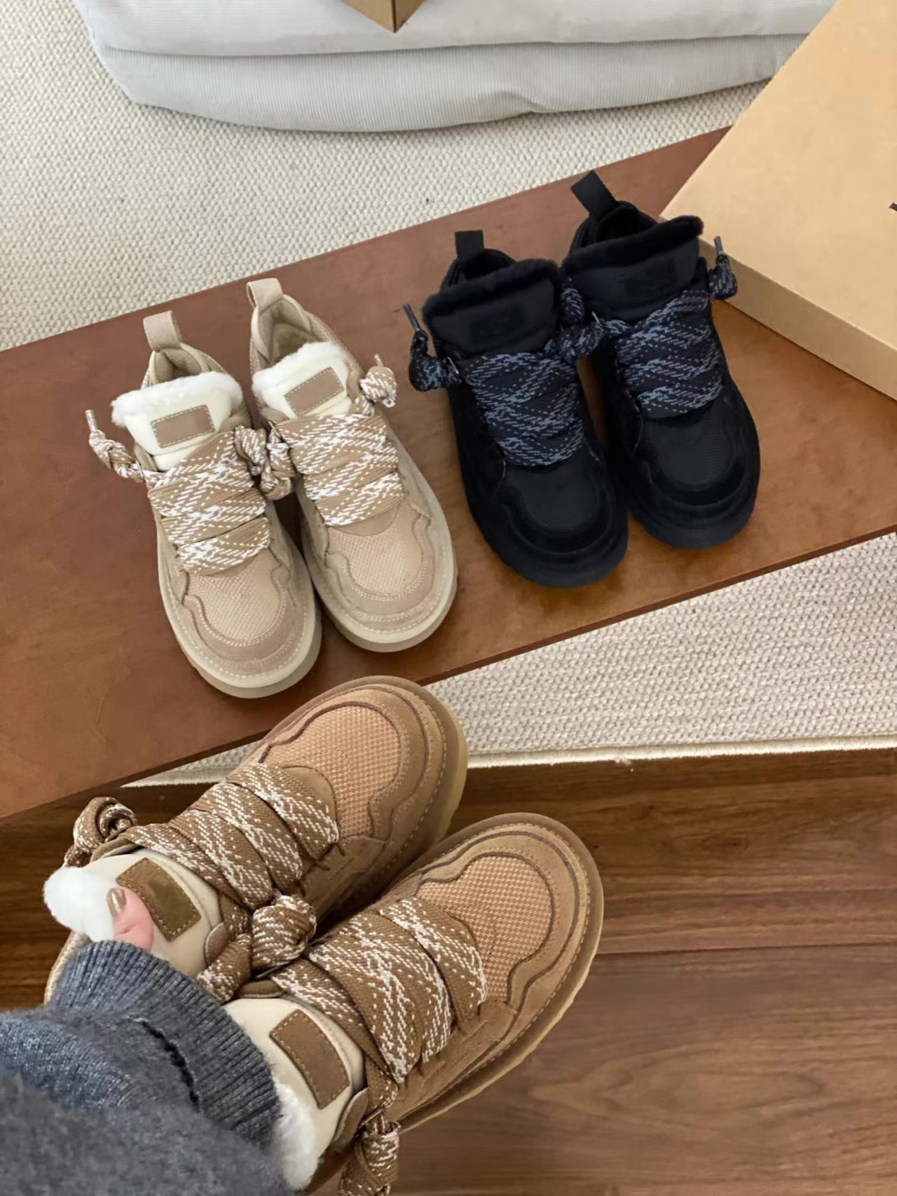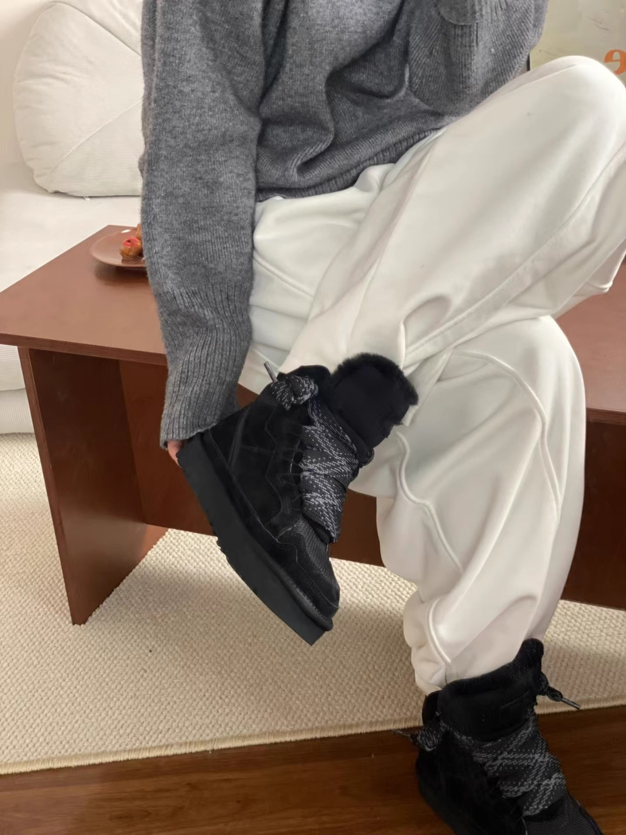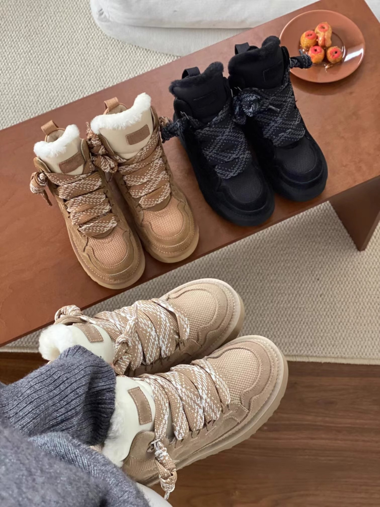 梅尔雪地靴情侣款羊皮毛一体系带防滑保暖运动休闲棉鞋羊毛雪地靴