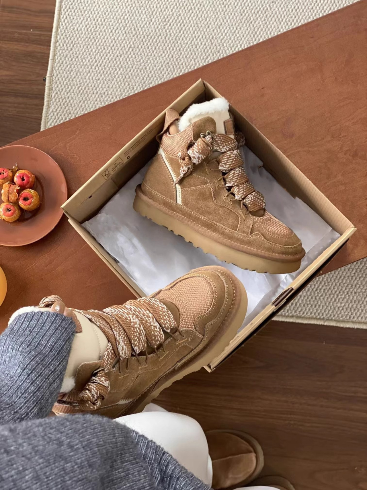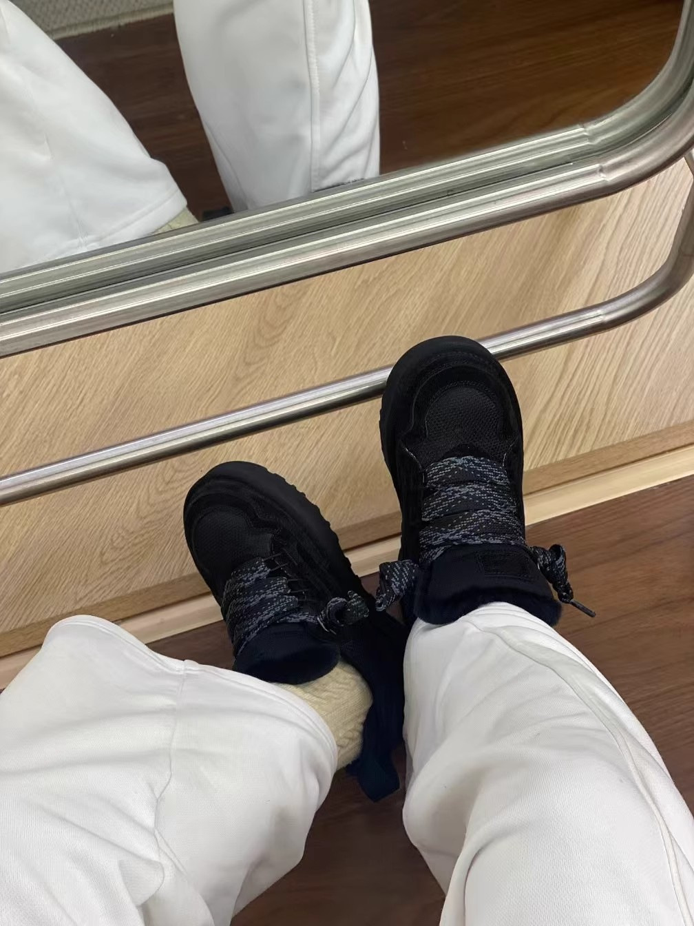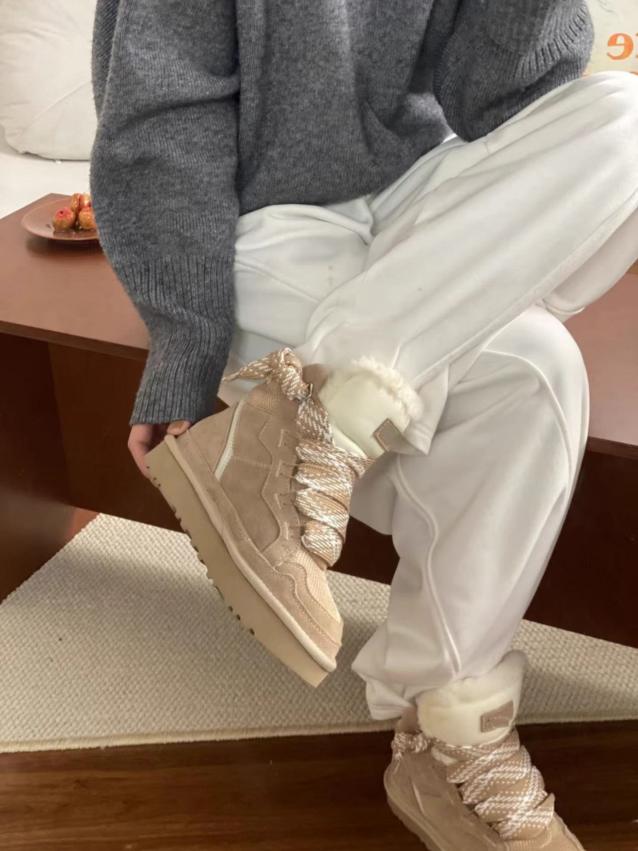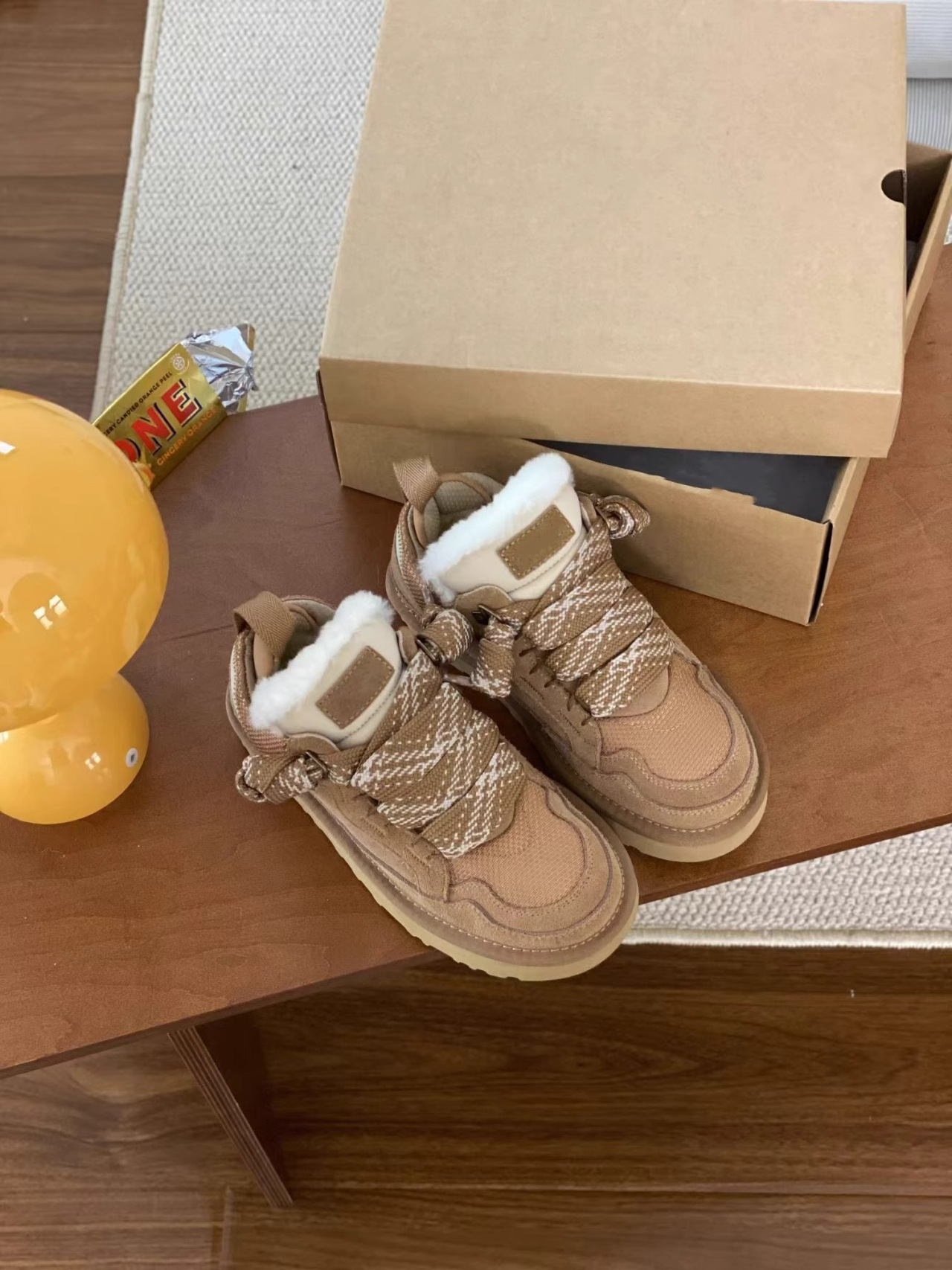 梅尔雪地靴情侣款羊皮毛一体系带防滑保暖运动休闲棉鞋羊毛雪地靴