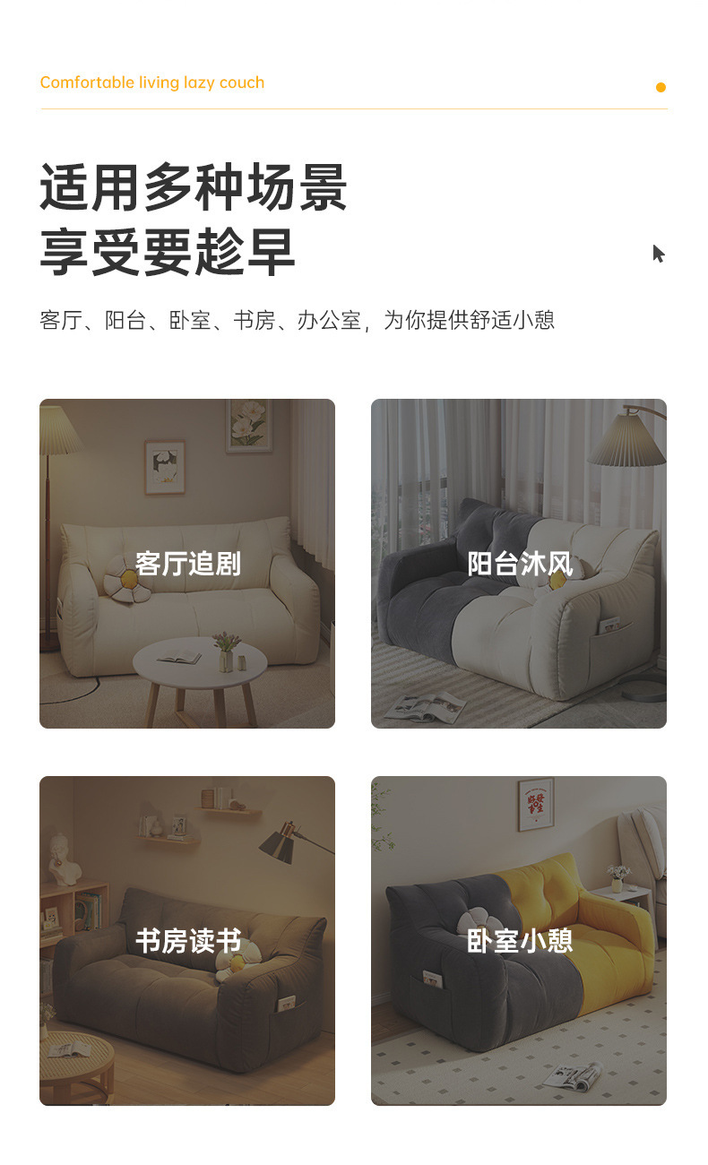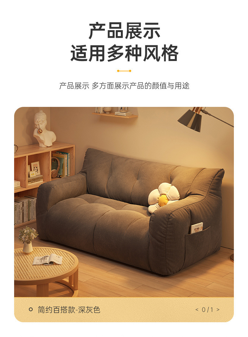 小户型布艺沙发家用可躺可睡卧室出租房双人榻榻米休息区懒人沙发
