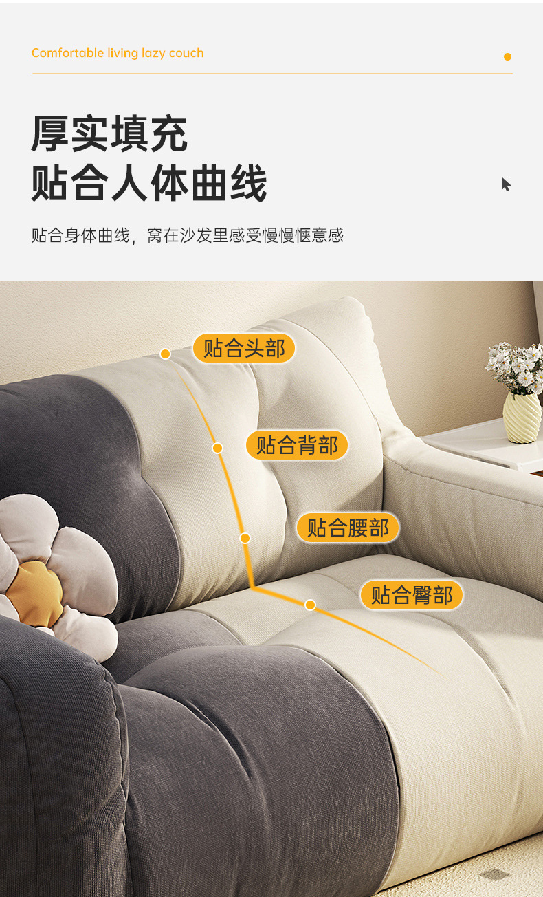ファブリックソファリビングルーム小さなアパート2025新しい賃貸住宅二人三畳リラックスエリア怠惰なソファ