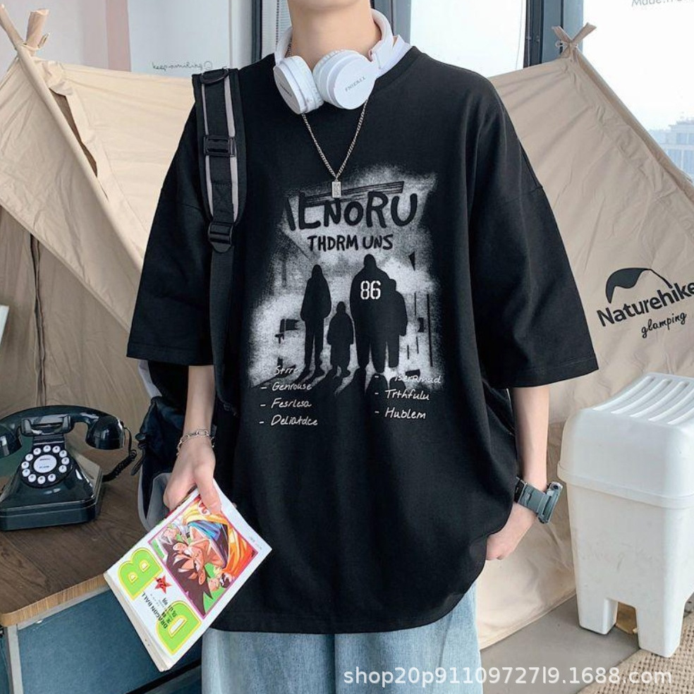 重いポンドの半袖のtシャツの男性のスーツのinsの潮流の夏の香港の風はゆったりしています。