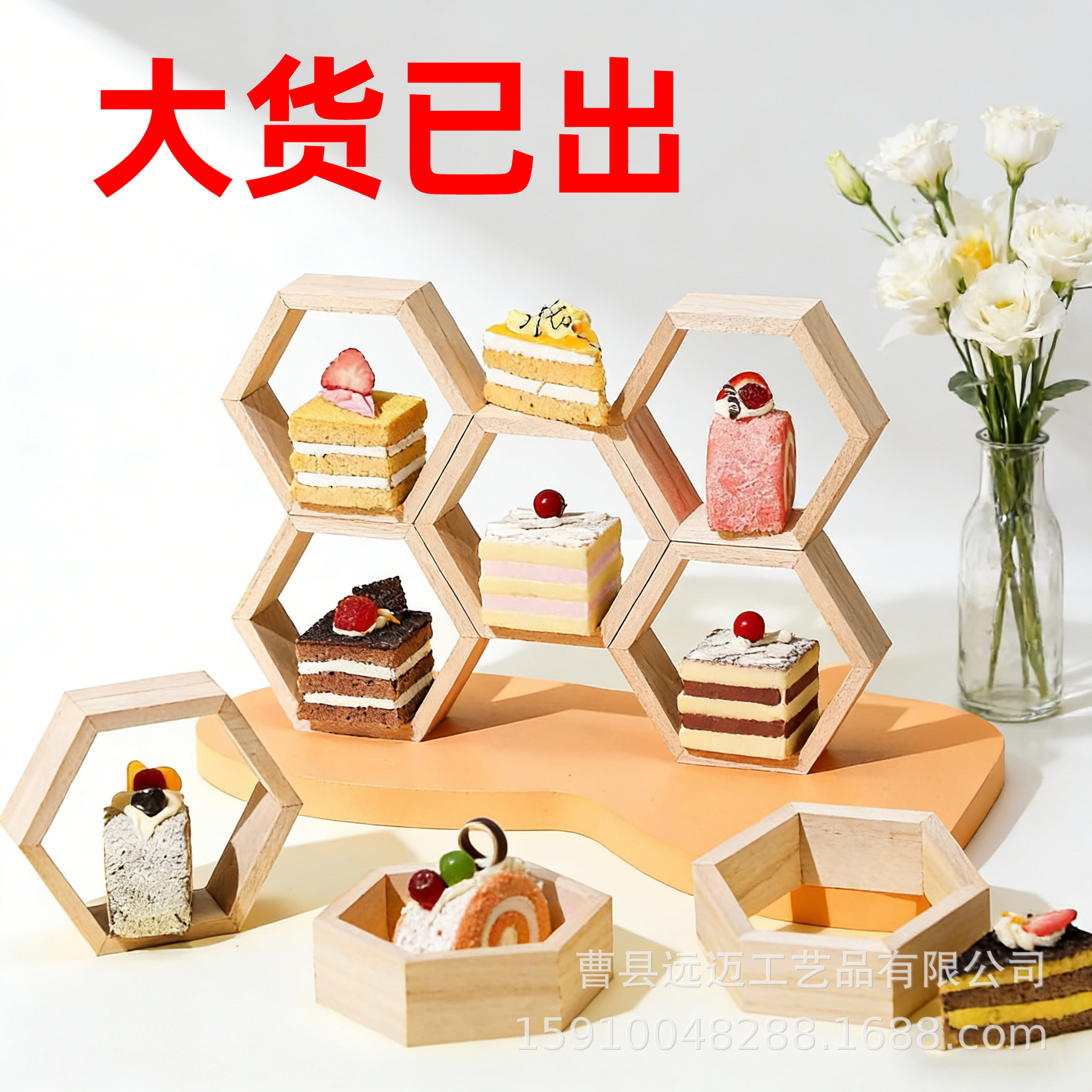 木製六角形ディスプレイスタンド ミニハニカムカップケーキスタンド パーティーテーブルデコレーション 六角形デザートスタンド