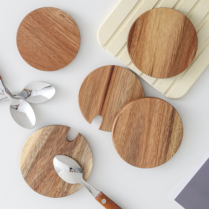 アカシアの木の円形の通用する杯の蓋の木製のマグカップの陶磁器のガラスの杯の蓋の自然な環境保護の杯の蓋の一体成型