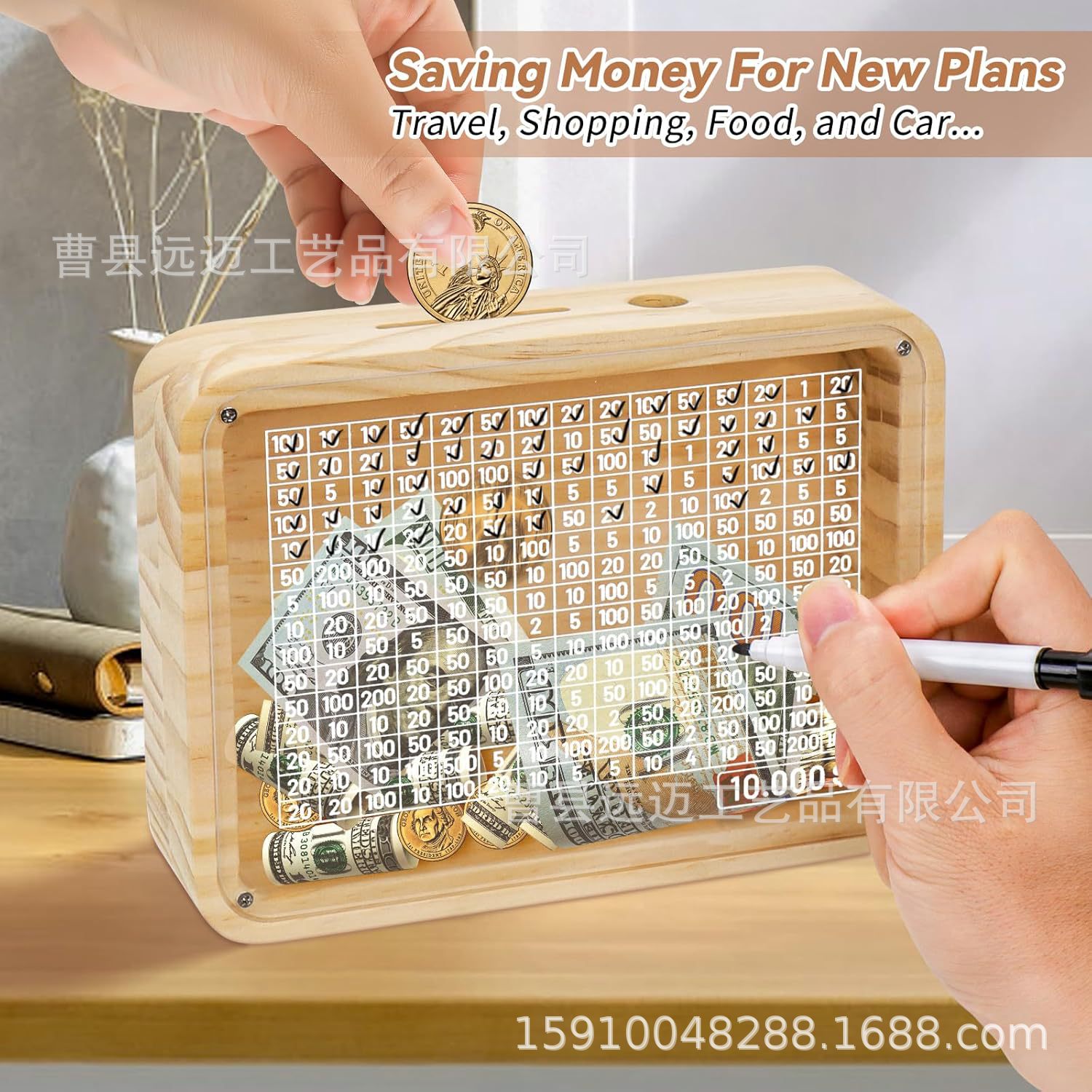 木製貯金箱アクリル現金コインカウンター目標数字貯金箱大人子供ギフト貯金箱
