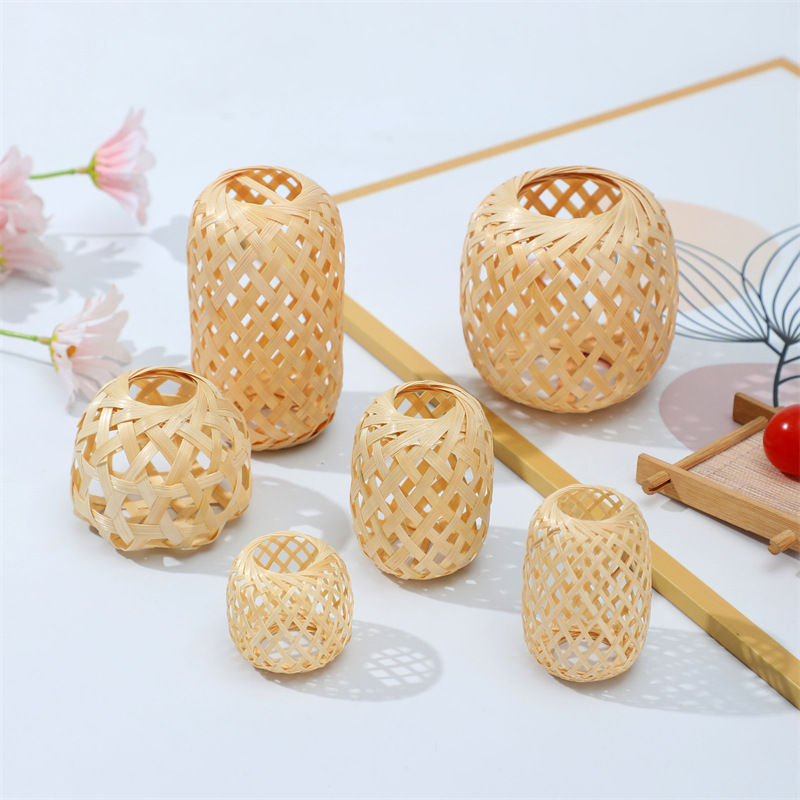 純手編みの籐製小提灯、ミニ透かし彫りランプシェード、竹編みの長提灯、ネット流行の潮山卸売装飾吊り下げ飾り