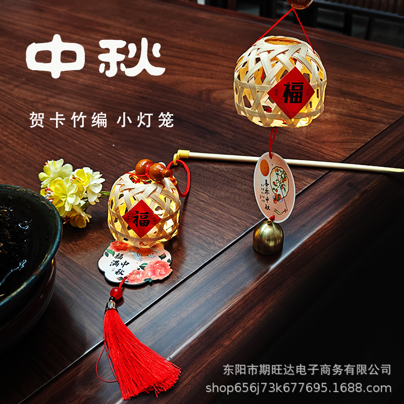 DIY復古風竹編み小提灯子供手提げ発光花灯屋外竹編みミニ中秋元宵提灯