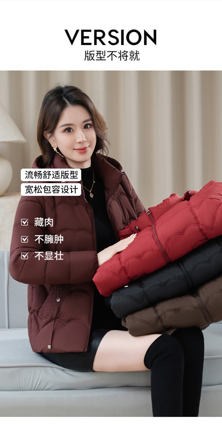 纯色翻领中年棉衣羽绒棉服外套女秋冬妈妈女士轻薄小棉袄短款通勤