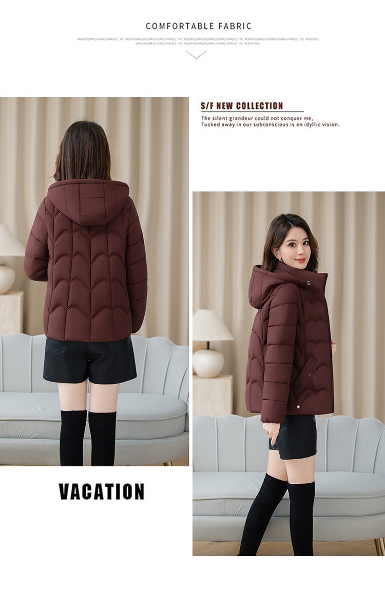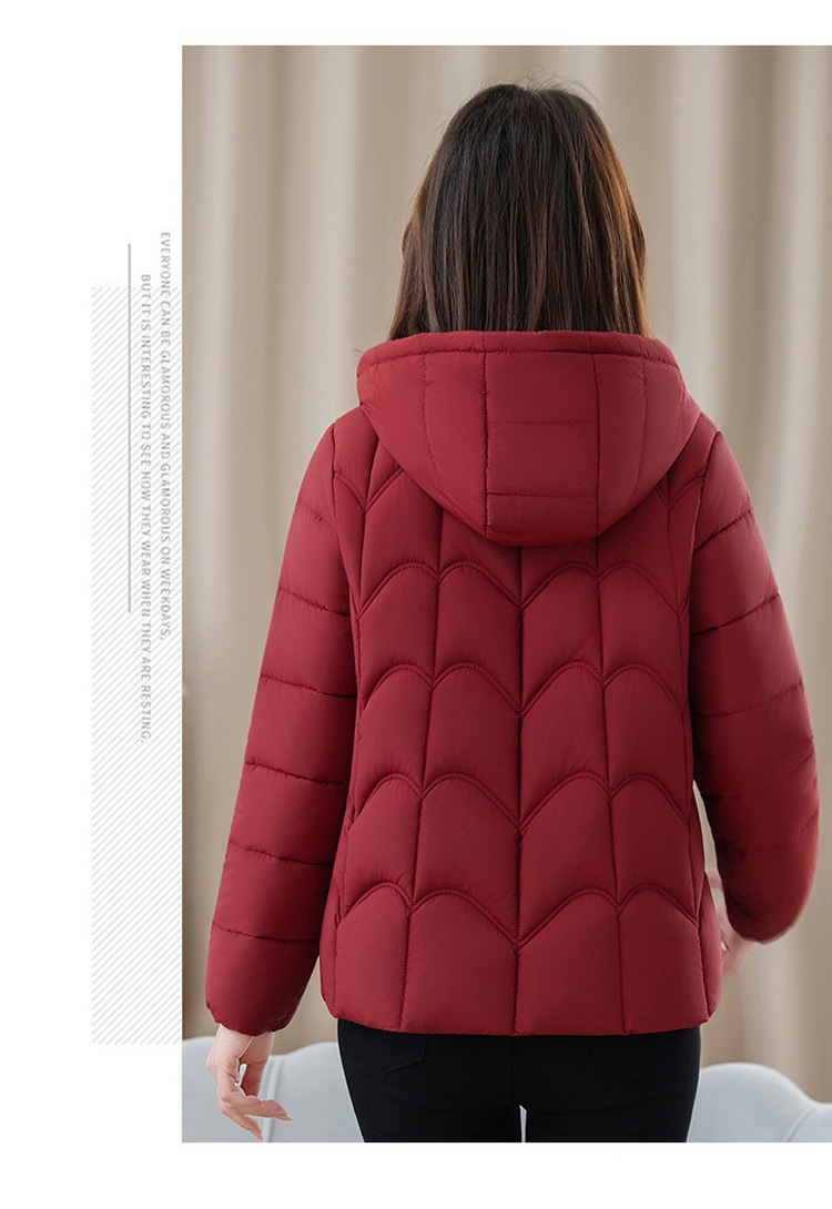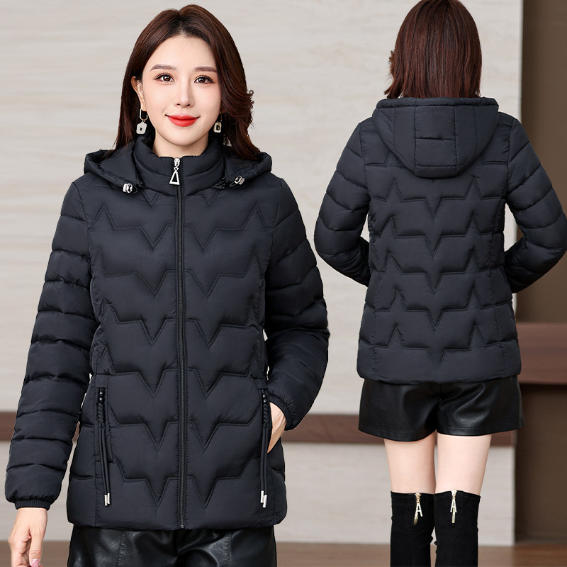 2025年冬用婦人綿入れジャケット、ゆったりとしたショート丈のダウン風コート、厚手、小柄な方向け、新作防寒綿入れ服