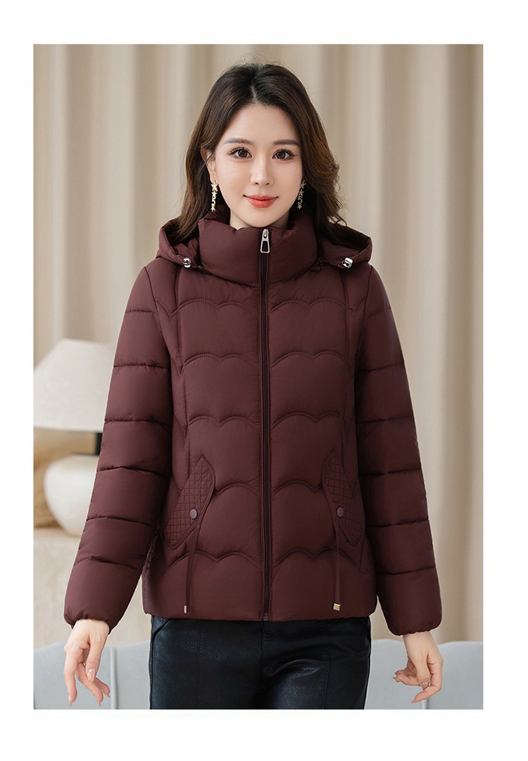 冬用厚手コート、ショート丈中年女性向けスタンドカラー中綿ジャケット、冬用ママ向け防寒コート、流行の防寒着