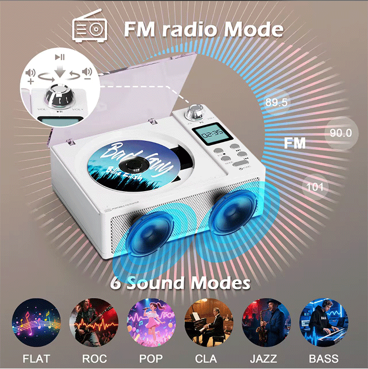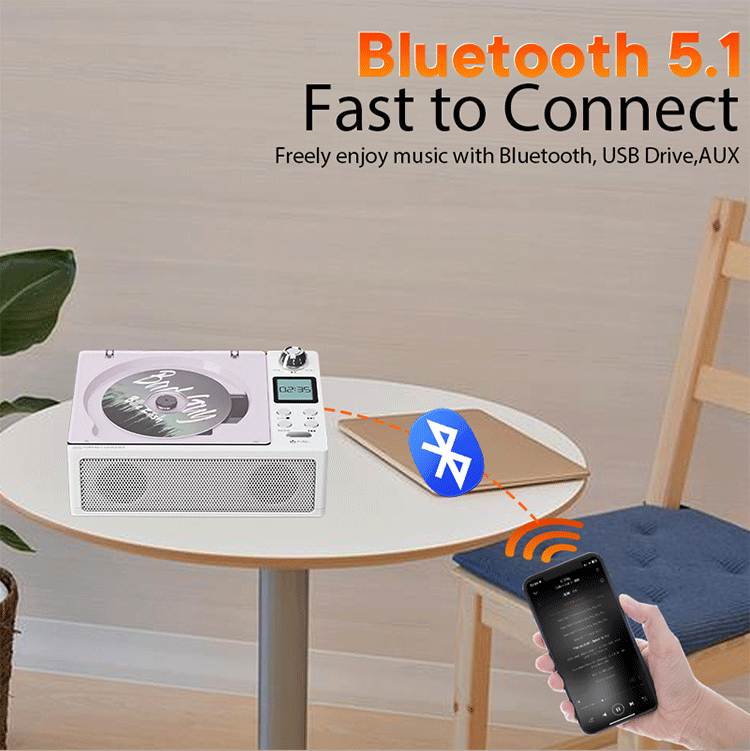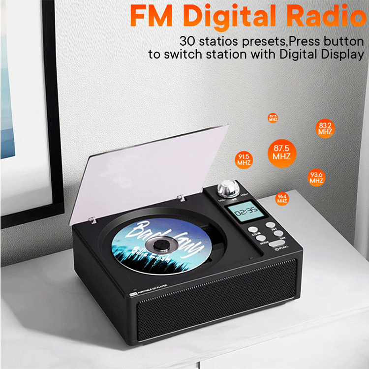 跨境新款CD播放机复古礼物英语蓝牙音响专辑光盘cd机收音一体机