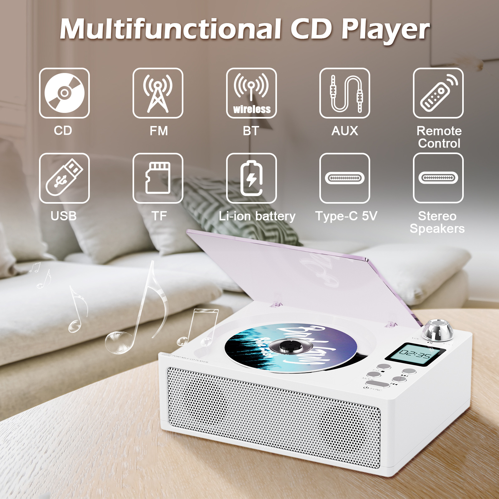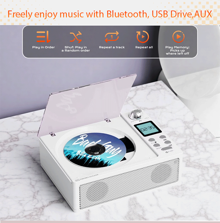 新款蓝牙便携 CD 播放器,双扬声器,Hifi音质,支持USB/TF卡/FM