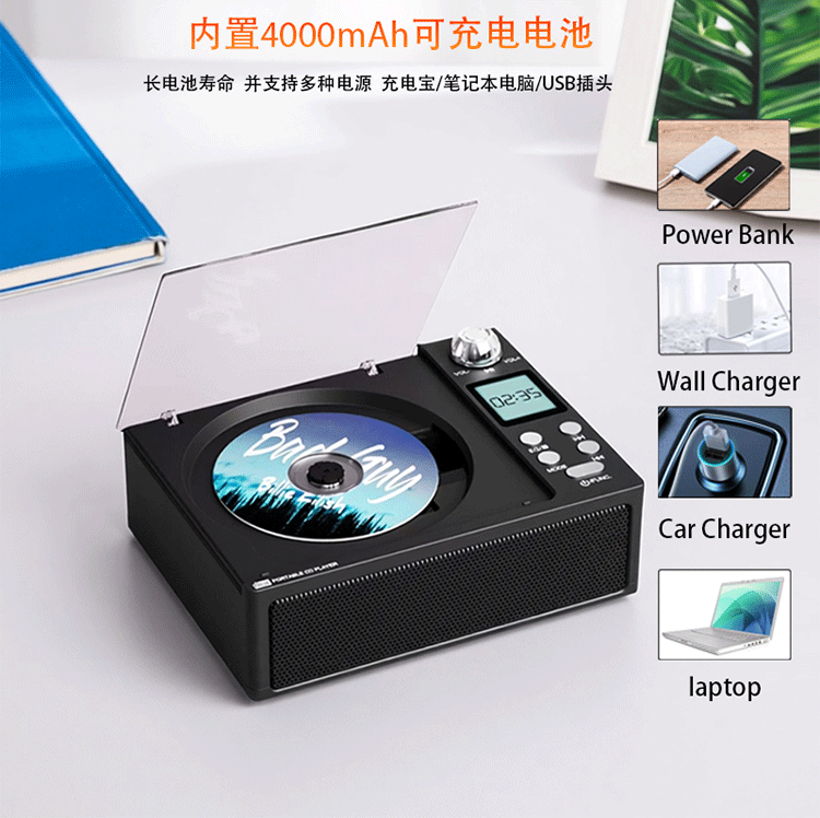 巴音盒跨境CD机带双向蓝牙音乐专辑光碟光盘播放器便携式充电礼物