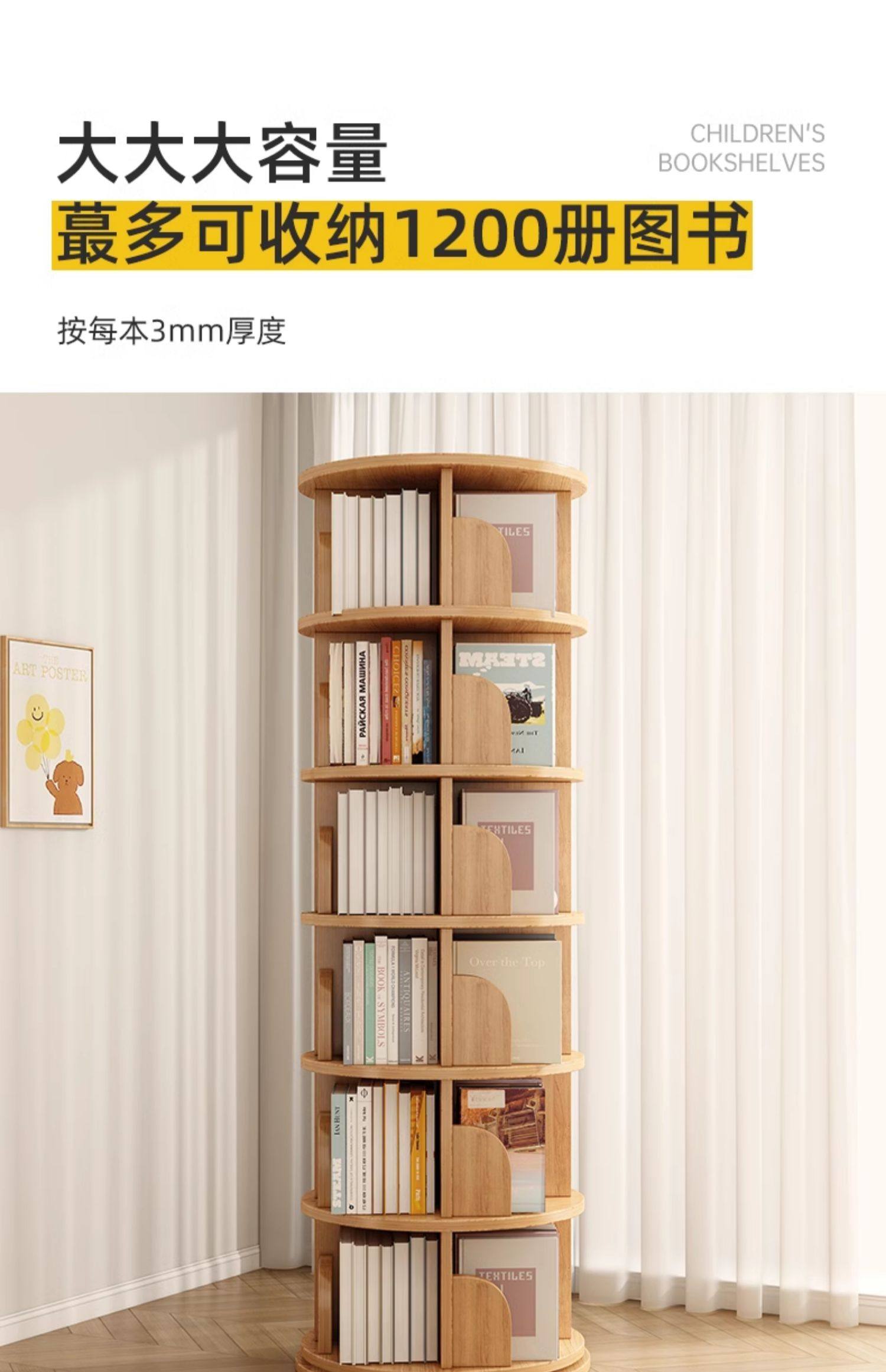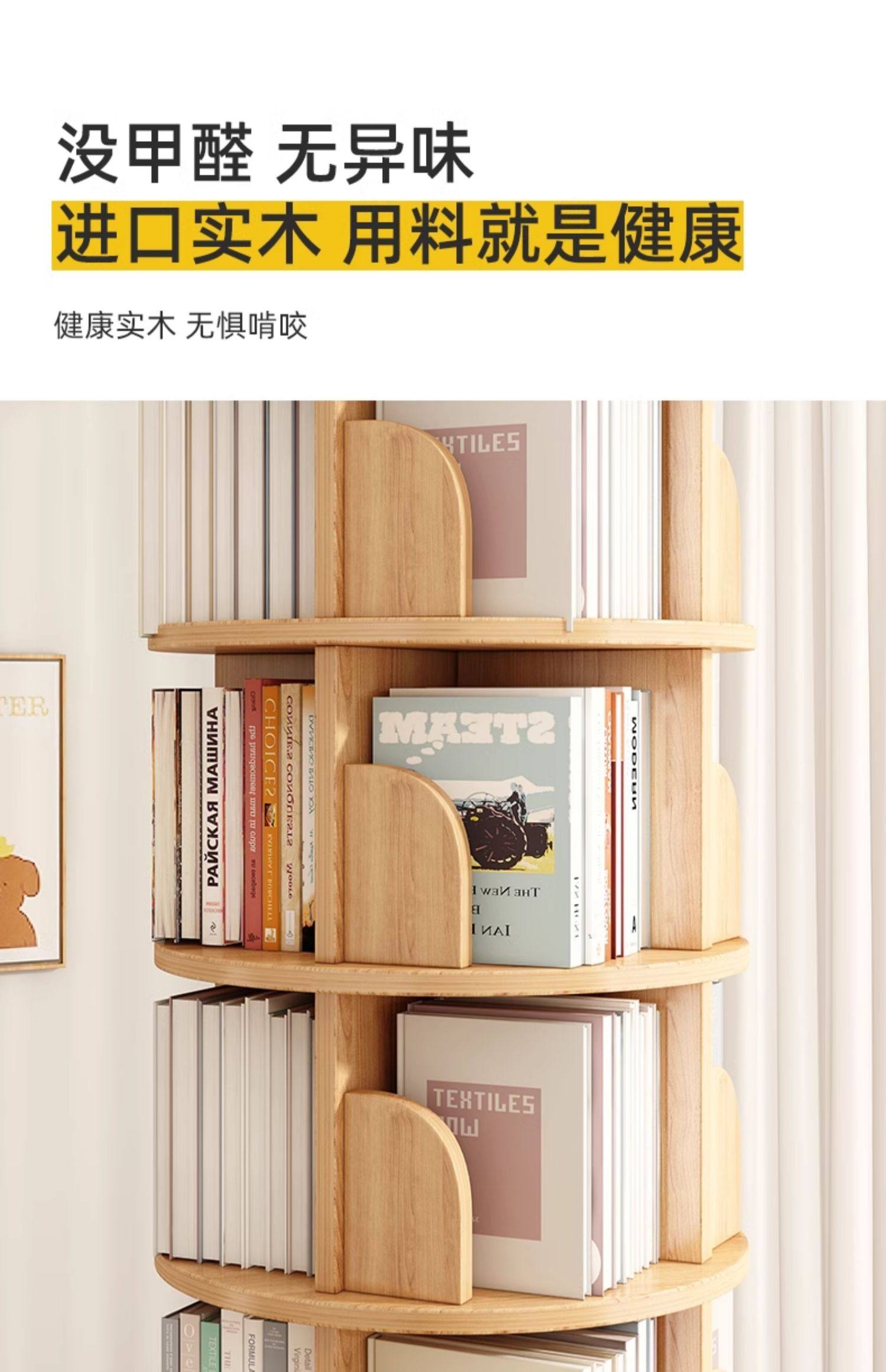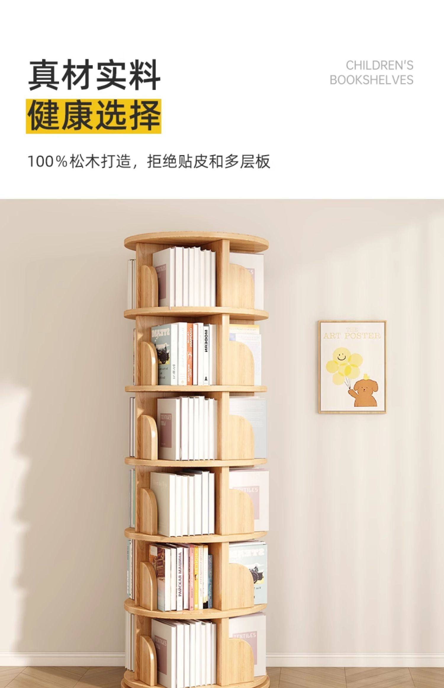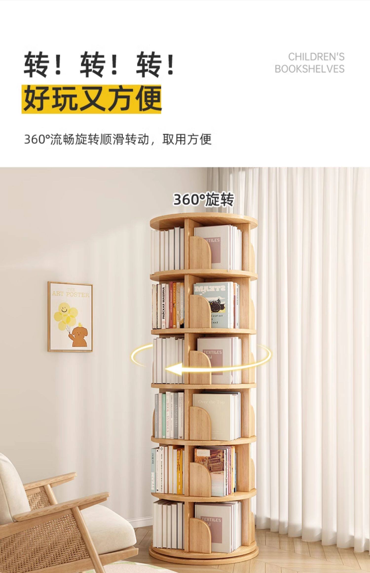 厂家直销实木旋转书架度书柜家用客厅儿童多层简约靠墙收纳架子