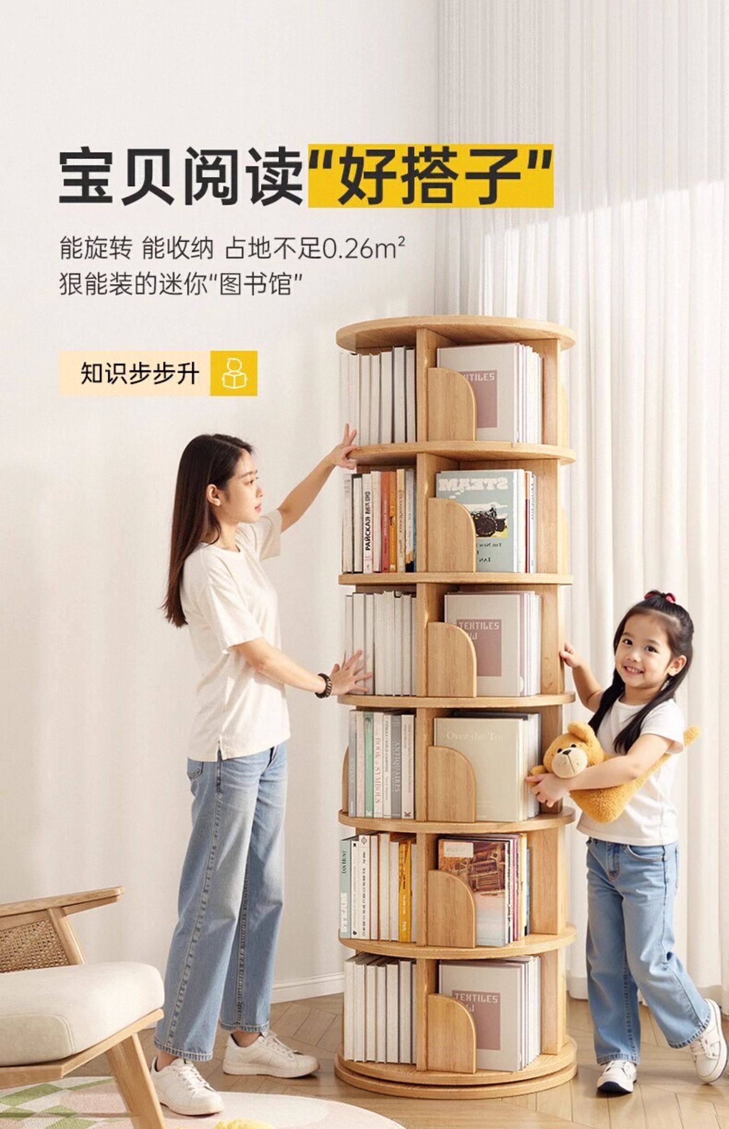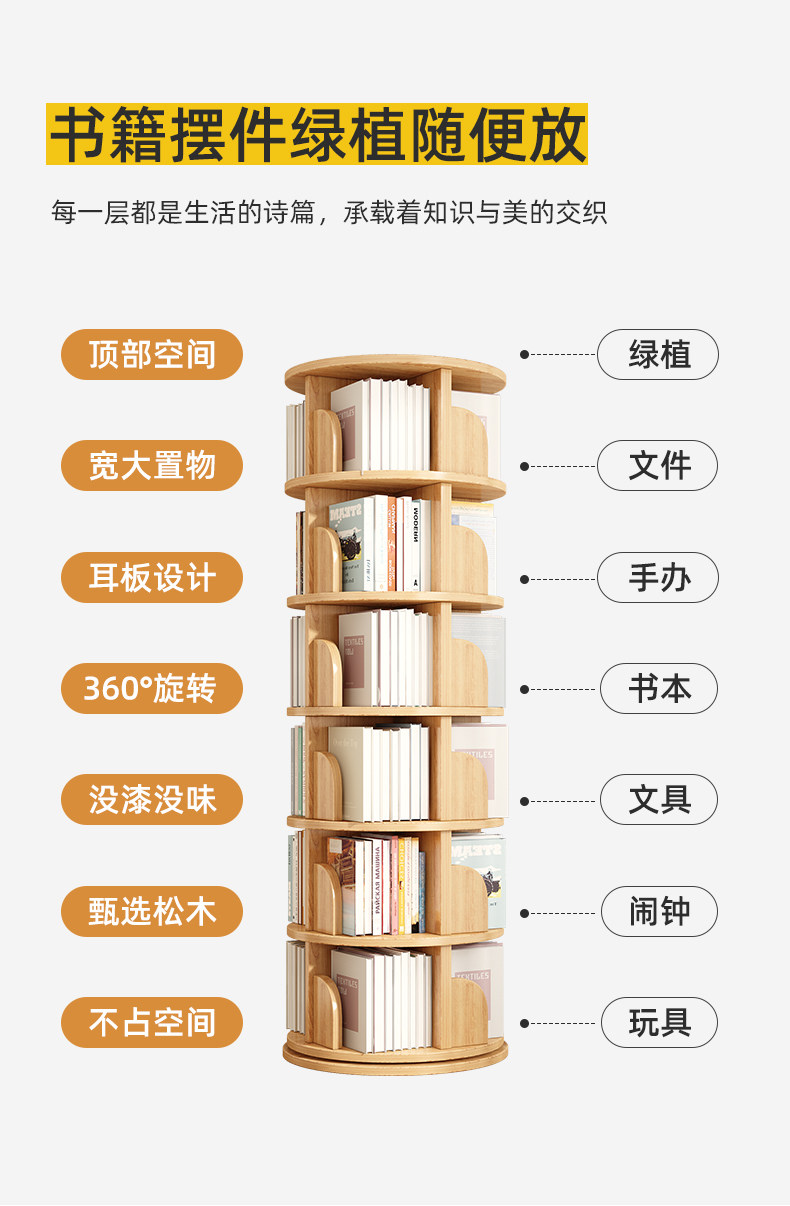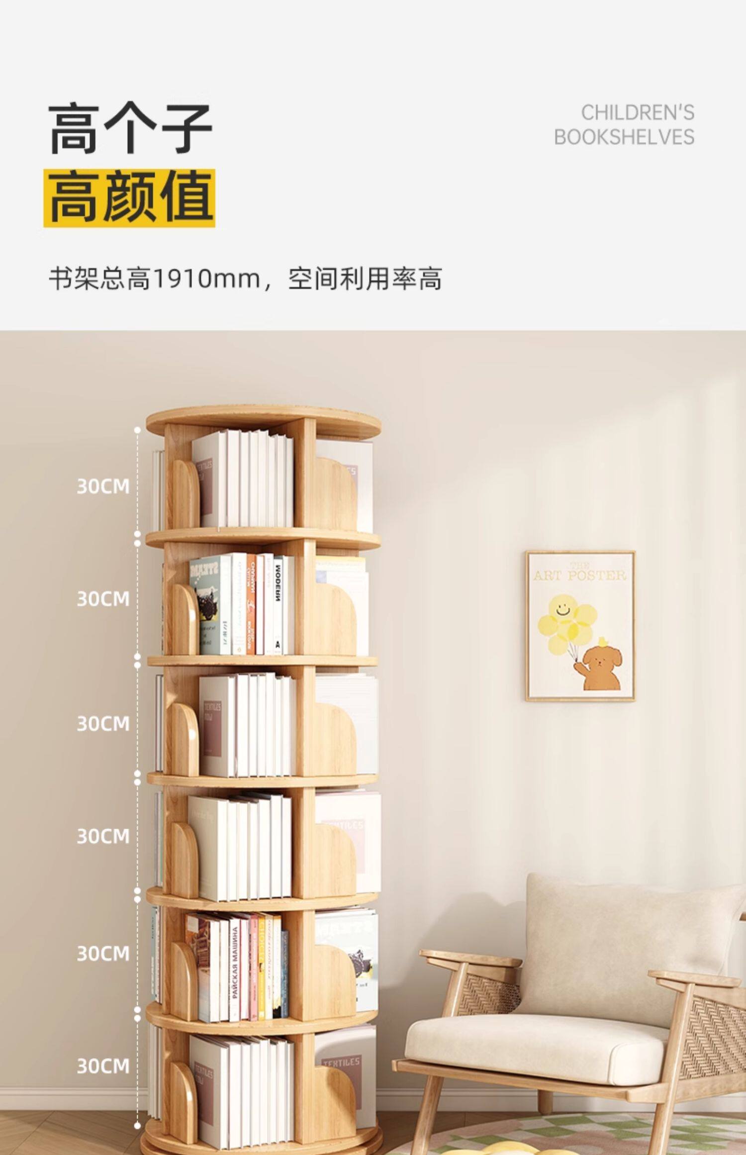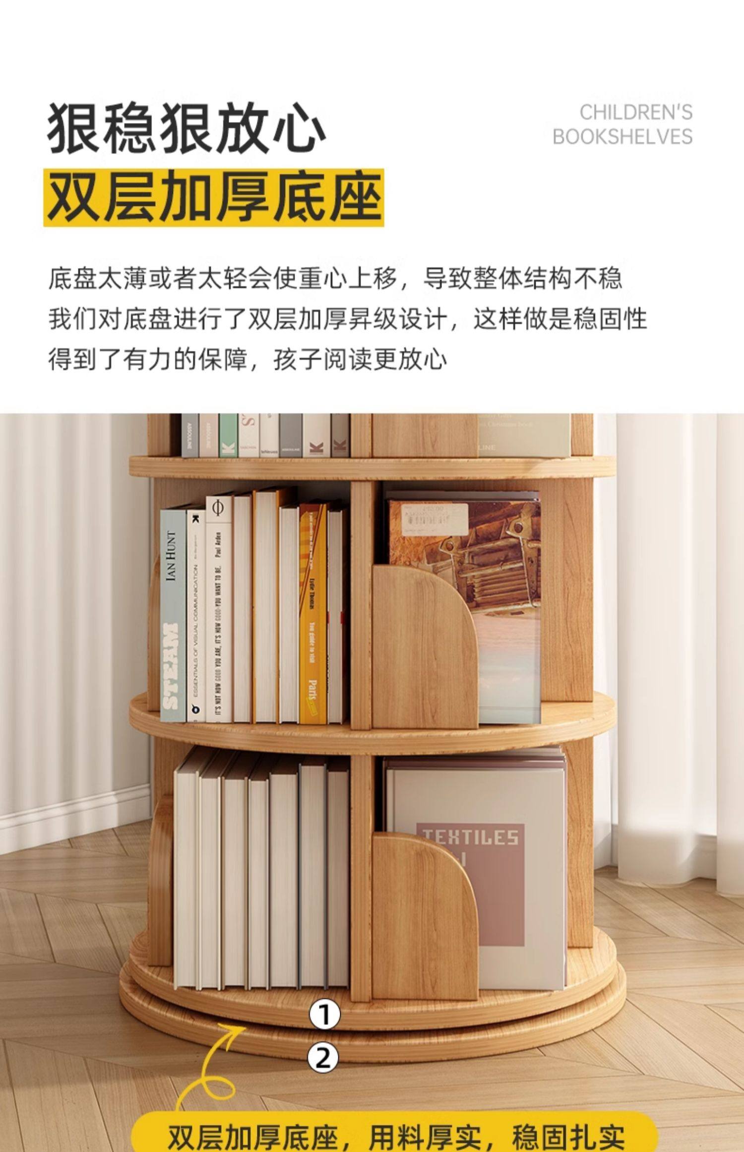 厂家直销实木旋转书架度书柜家用客厅儿童多层简约靠墙收纳架子