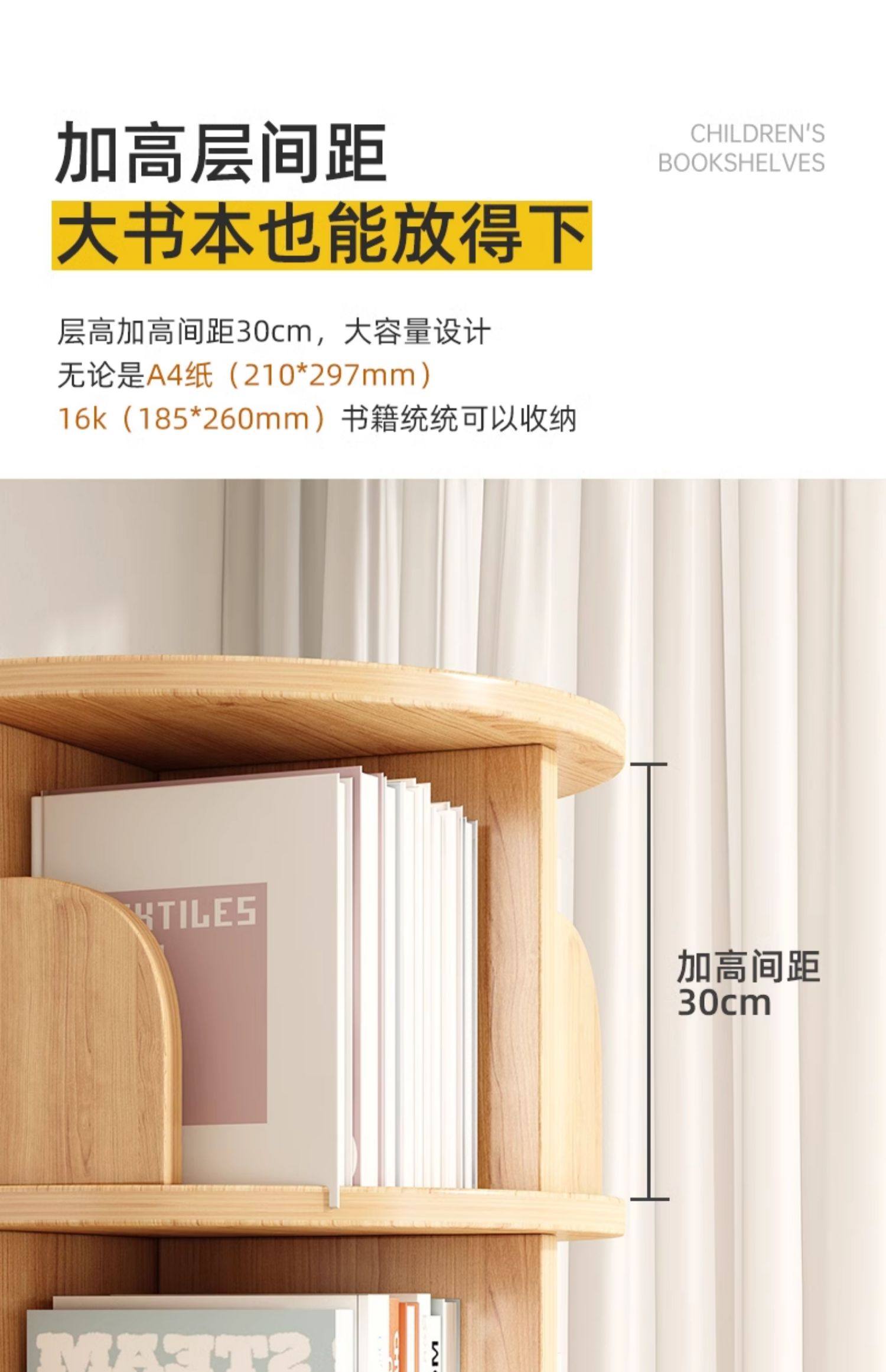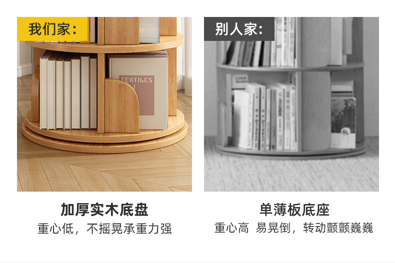 旋转书架实木360度落地置物架家用立式学生储物柜落地转角书柜