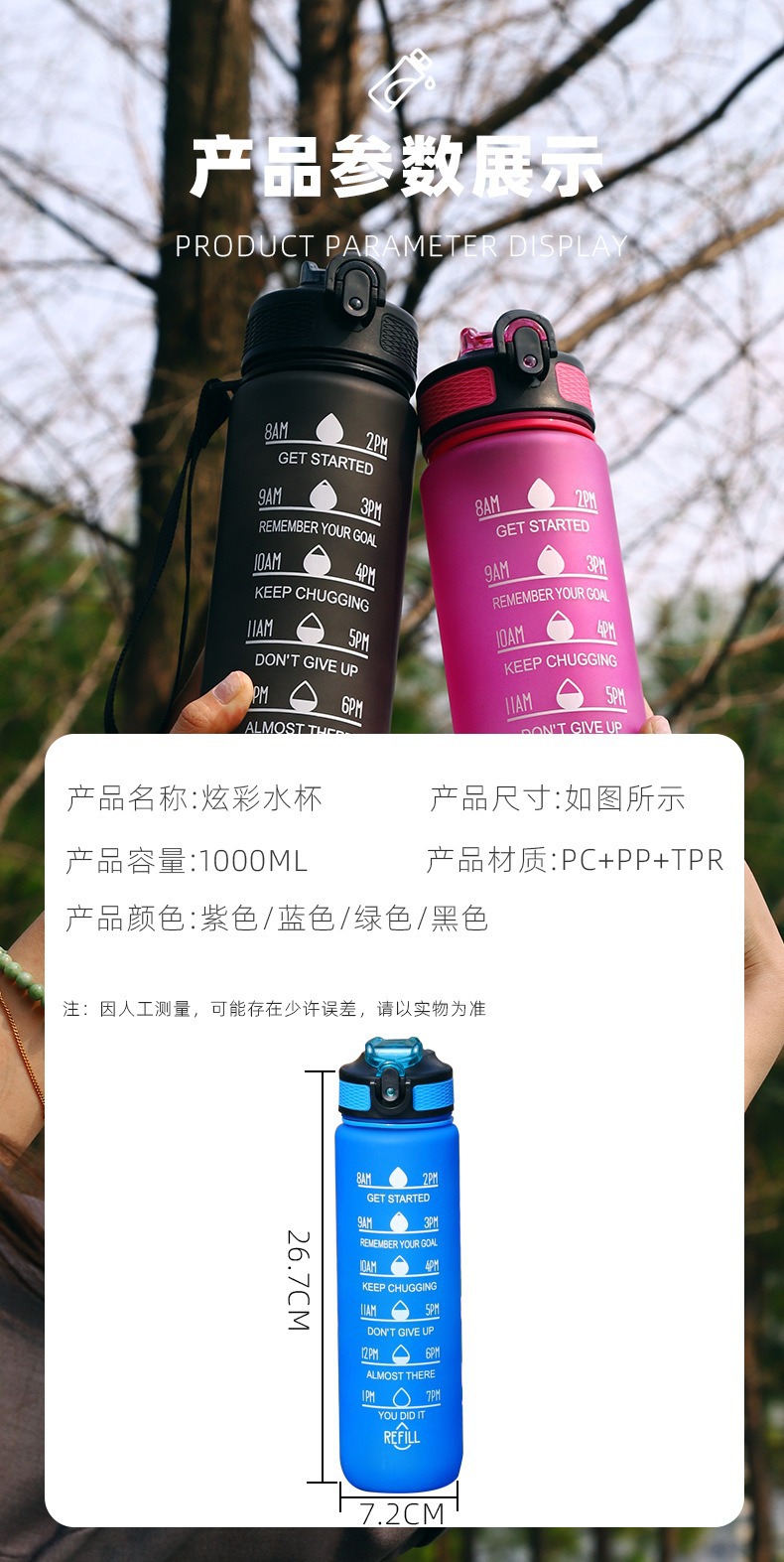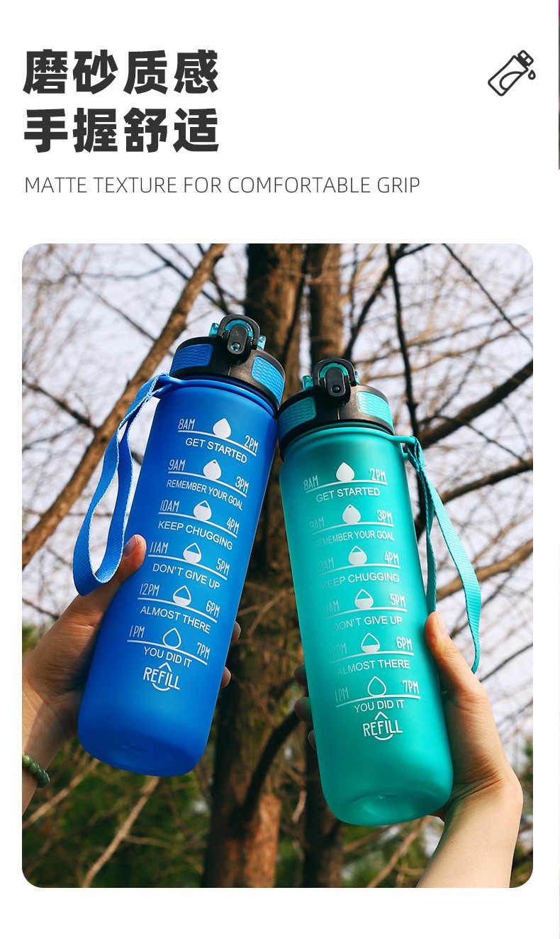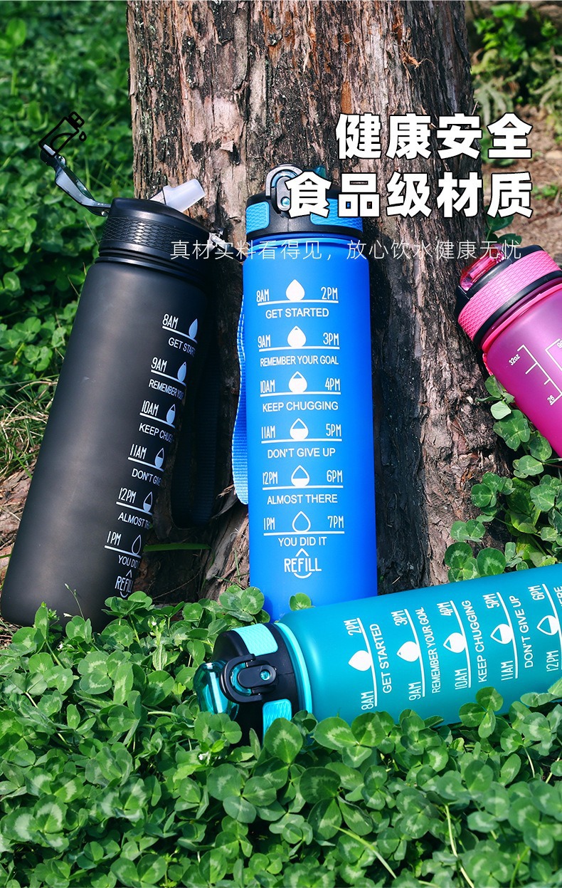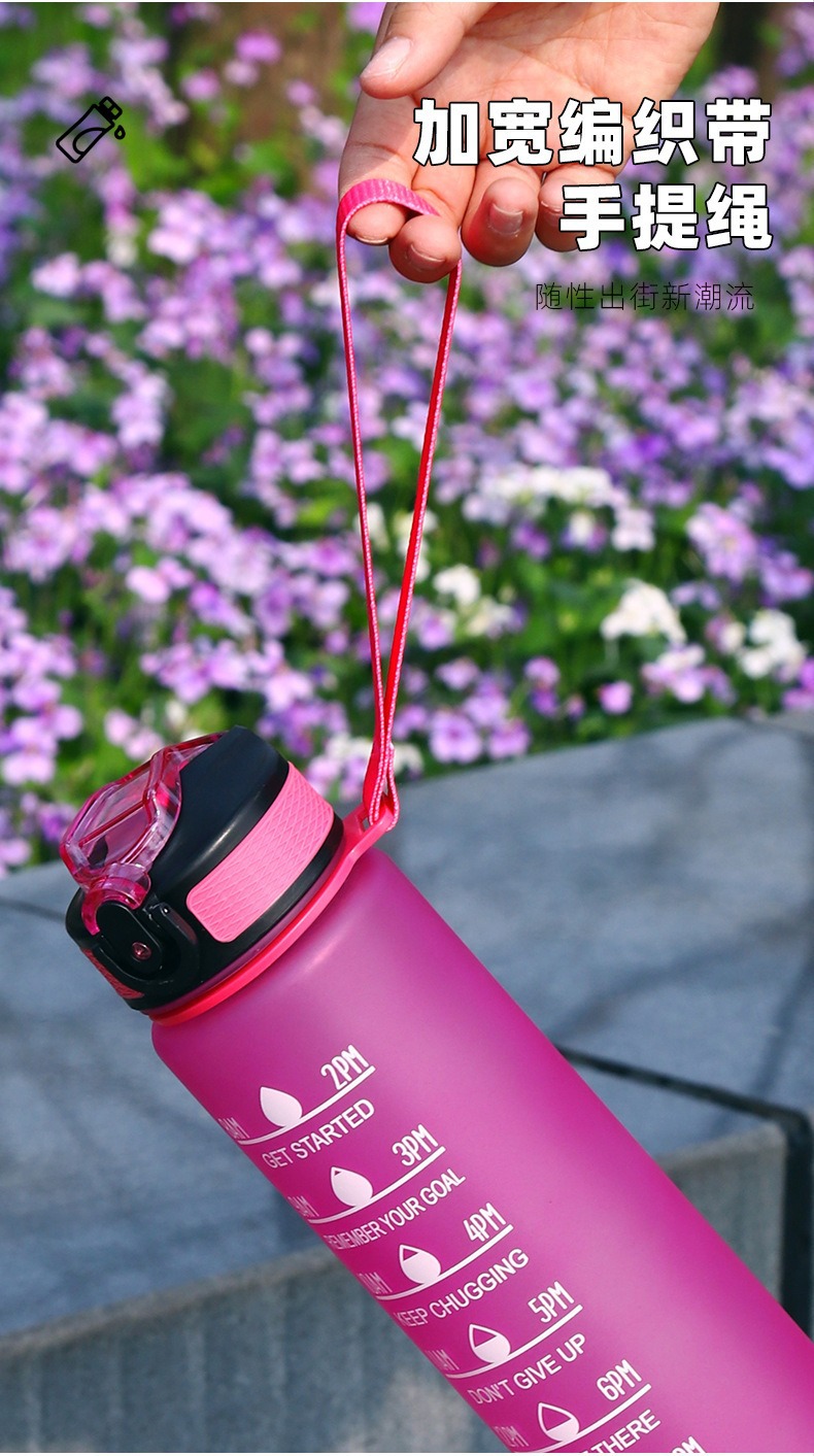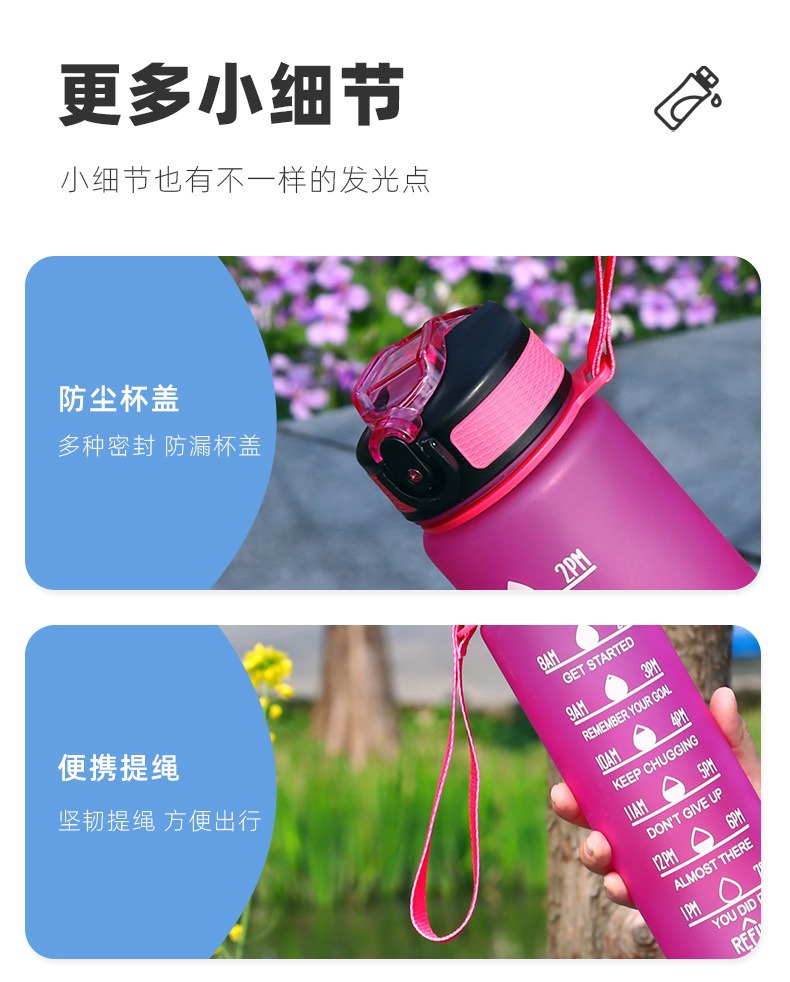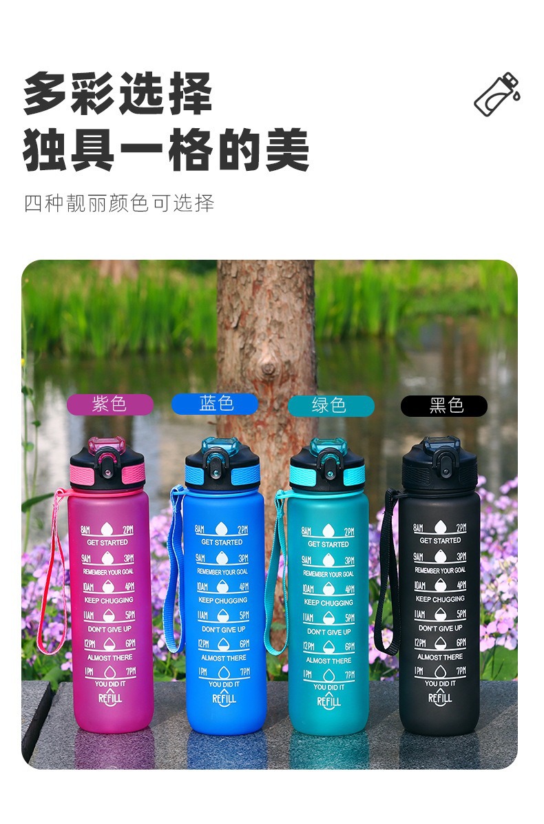 亚马逊大容量高颜值便携1000ml夏运动炫彩太空杯塑料刻度水壶杯子