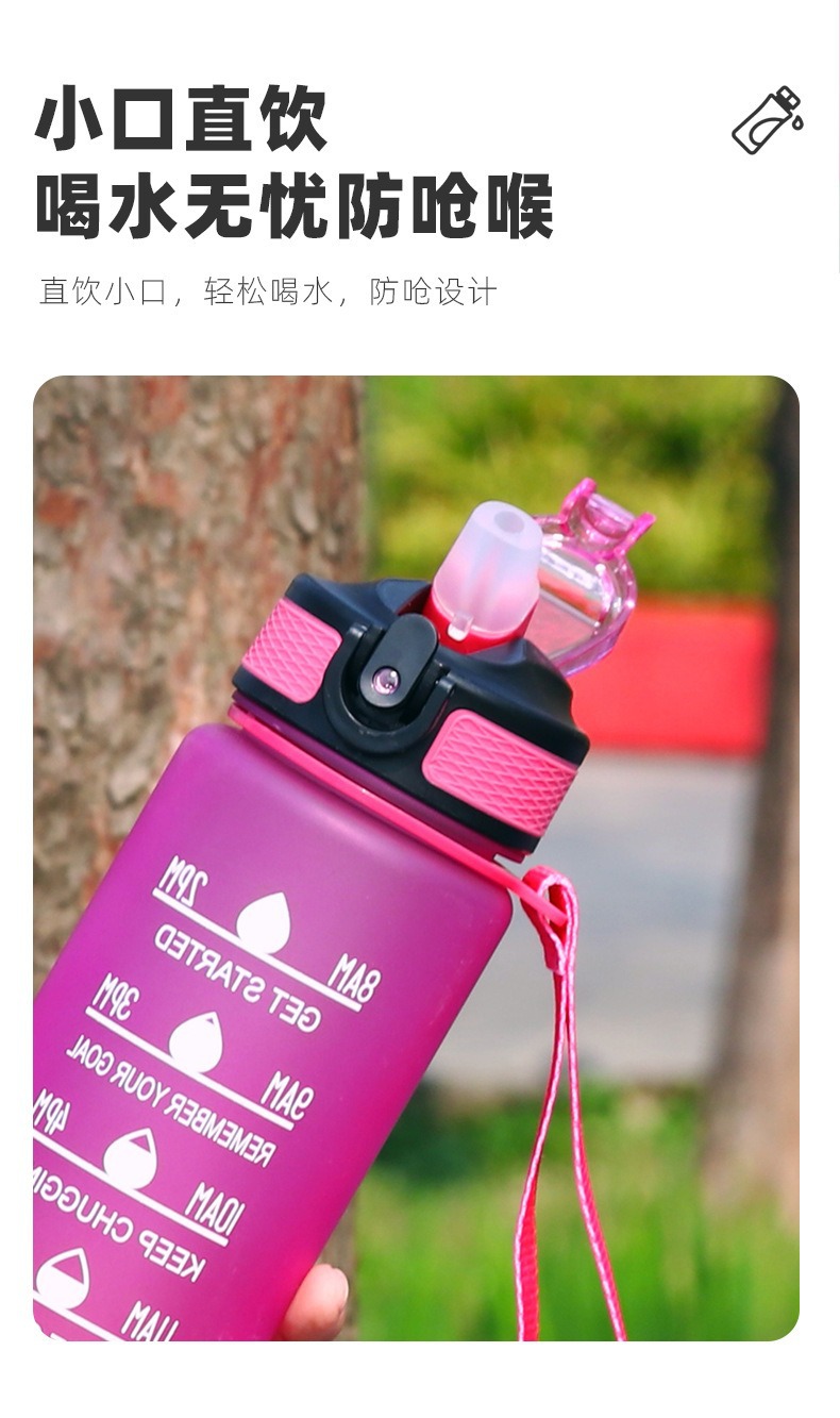 跨境渐变大容量塑料三套杯运动壶便携太空吸管杯弹盖外贸吨吨水杯