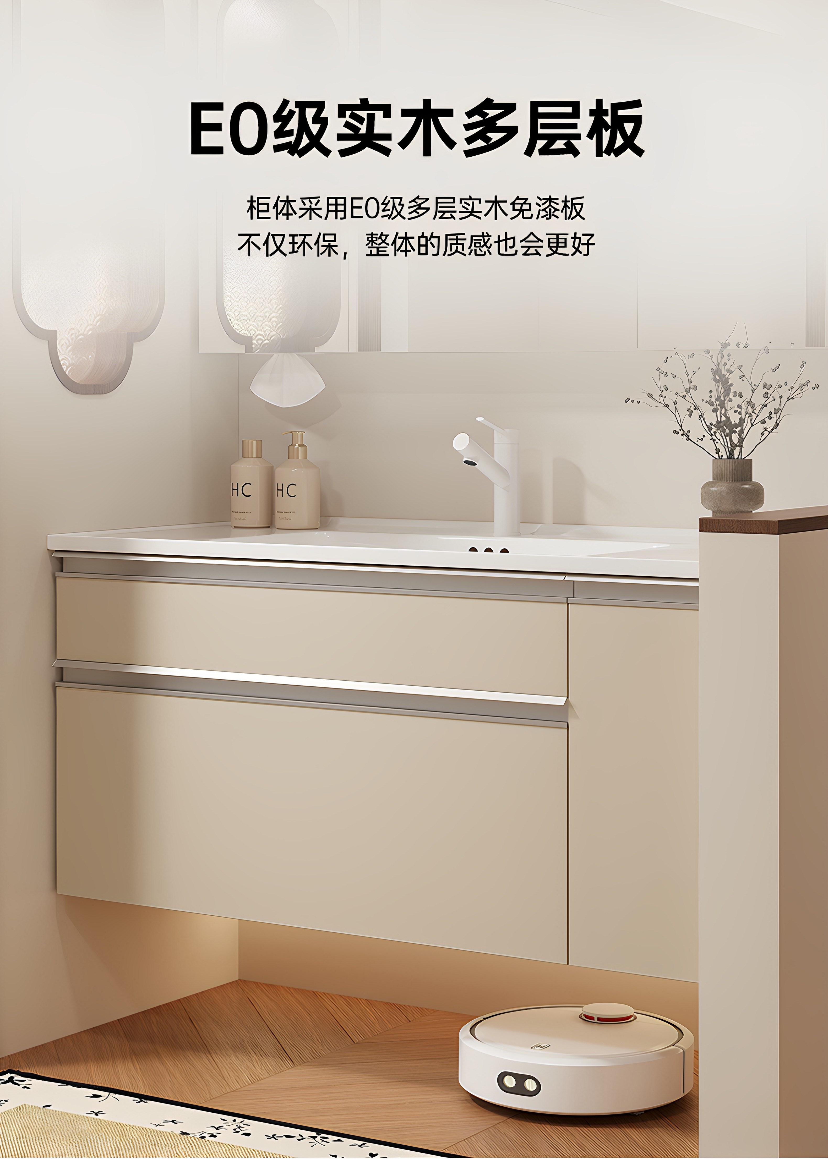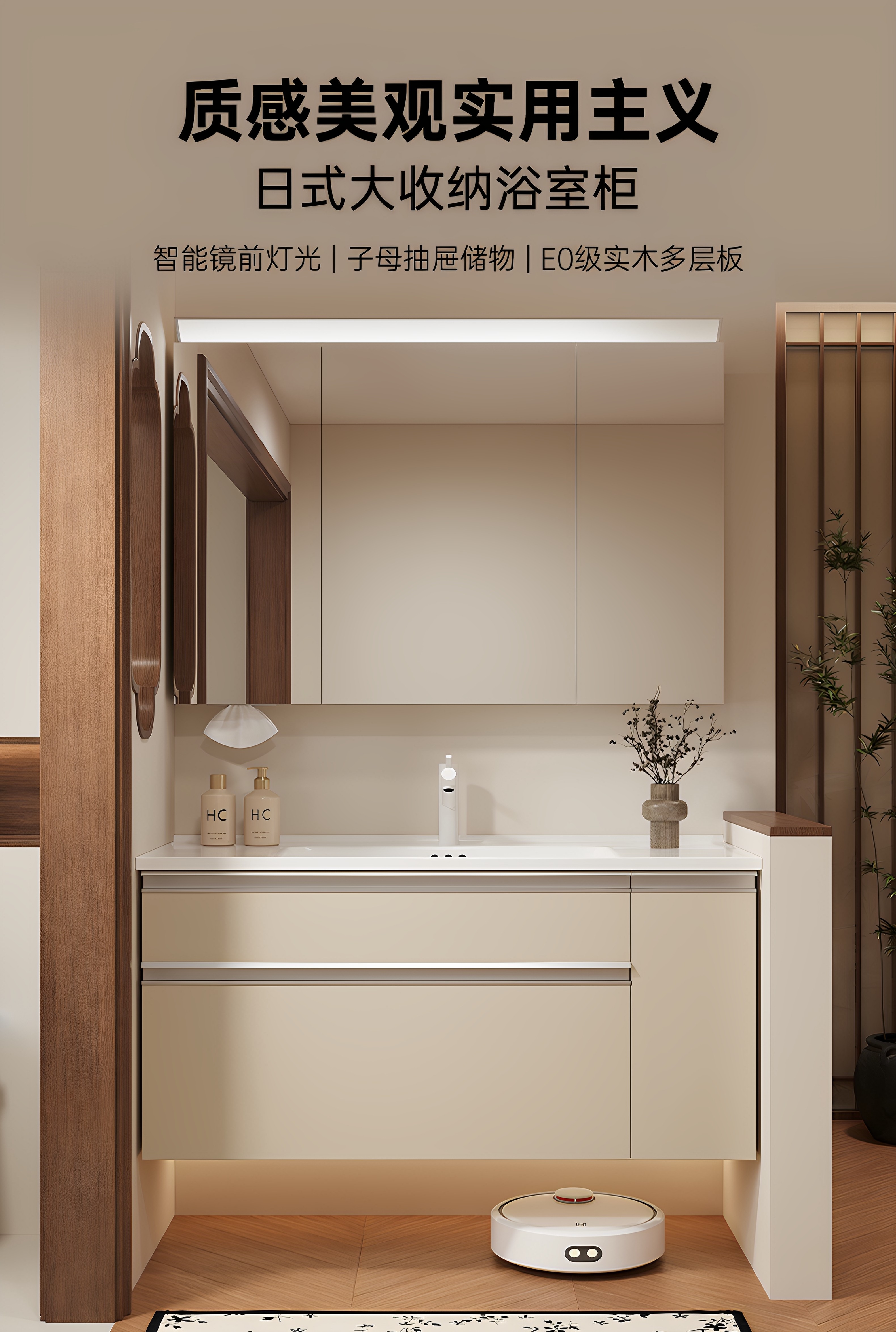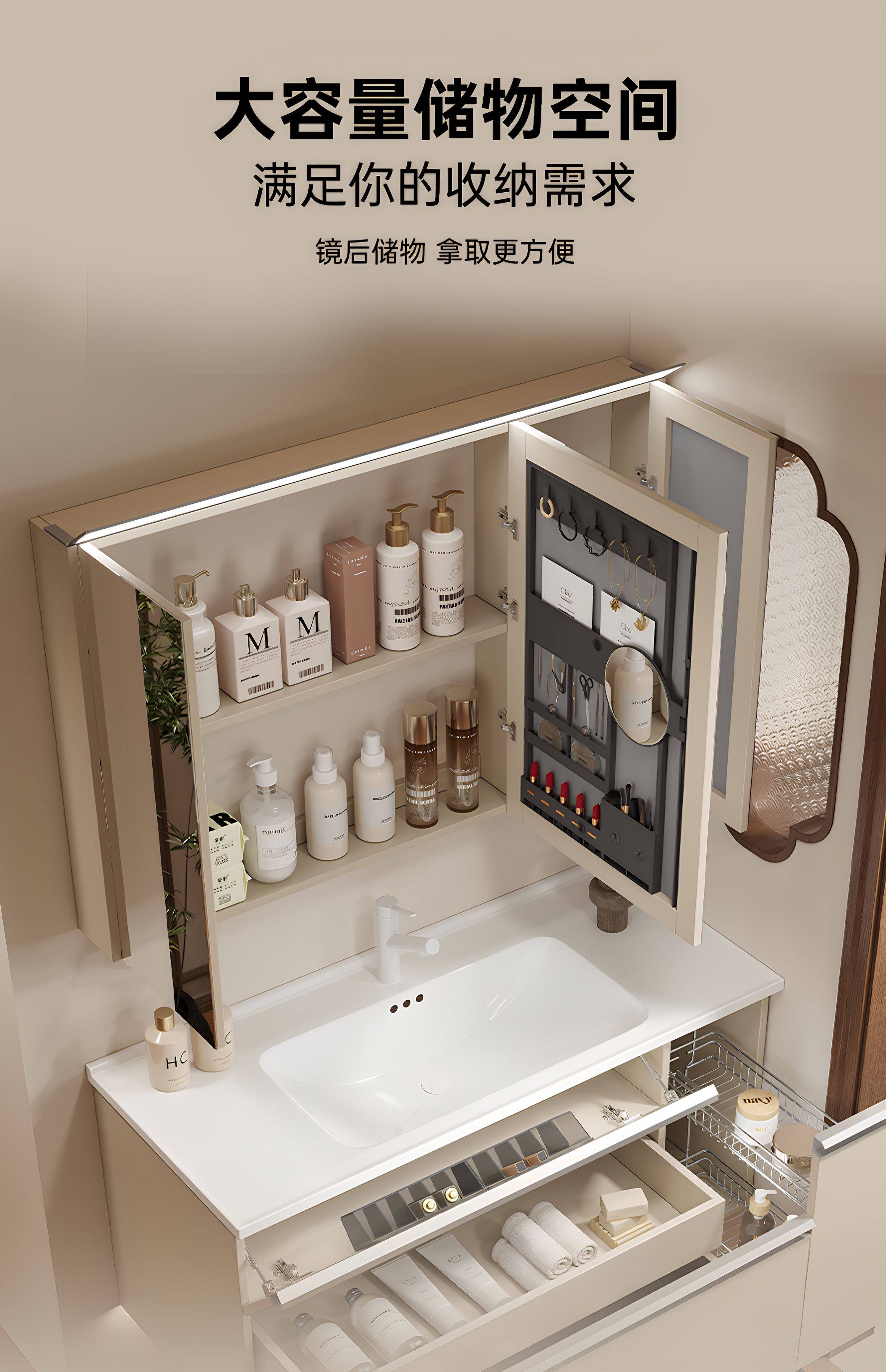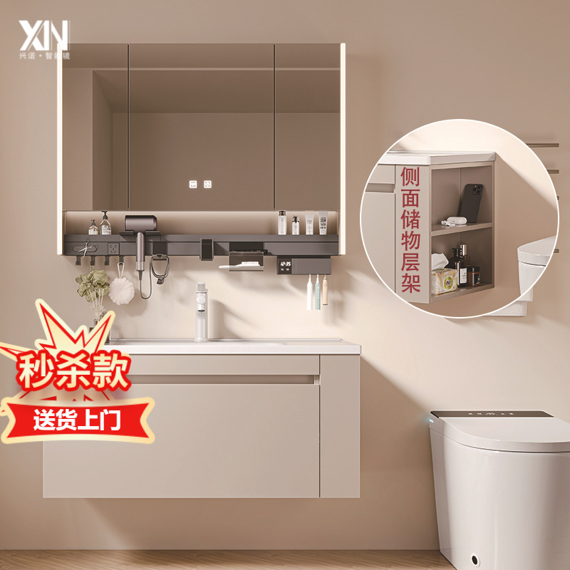 卫生间多功能智能镜柜洗脸盆实木多层板挂墙浴室柜组合陶瓷一体盆
