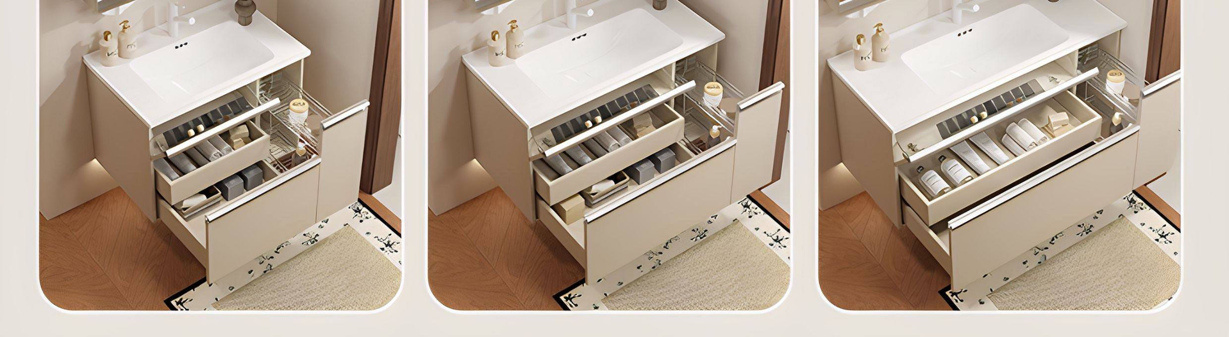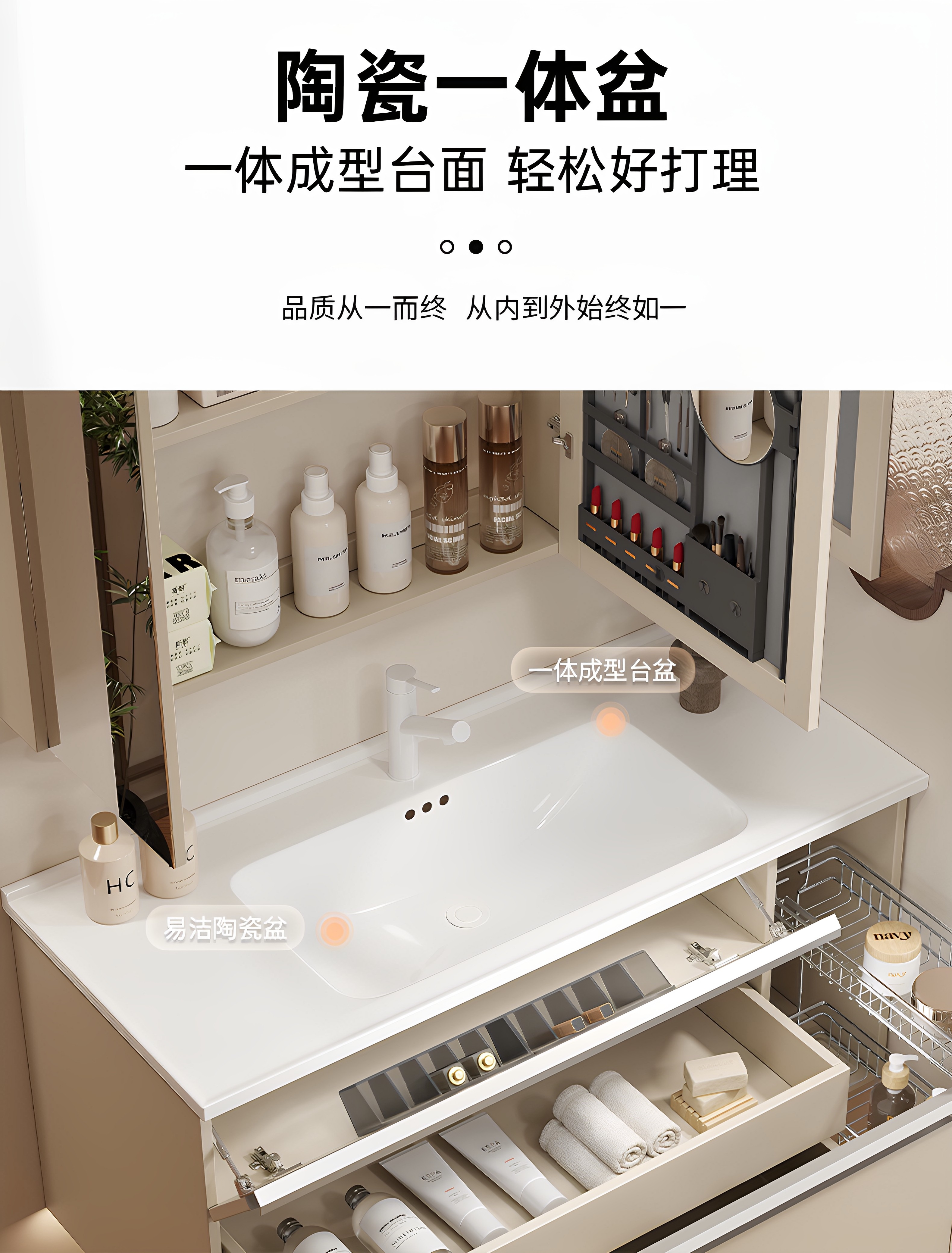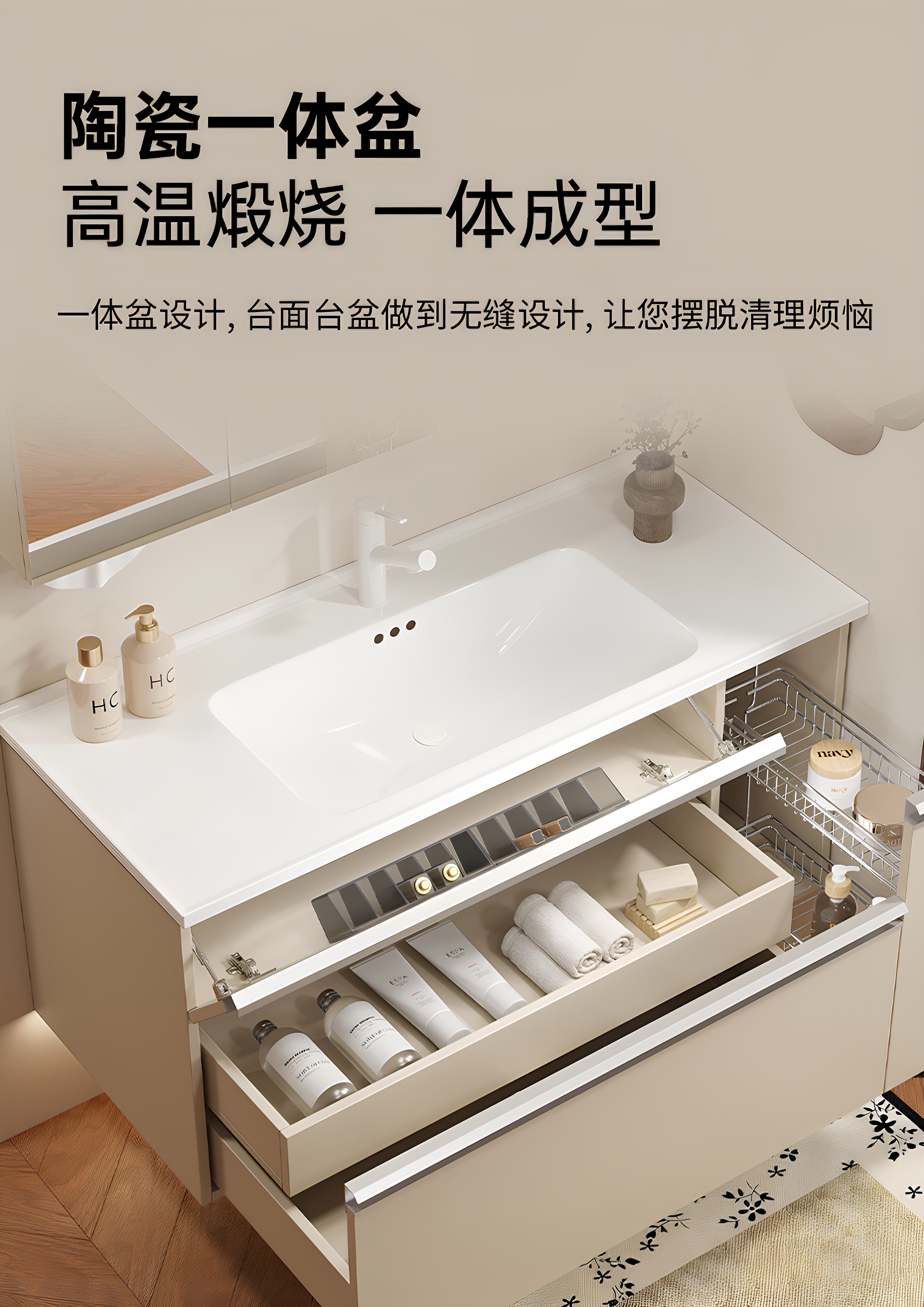 一体型セラミック洗面器バスルームキャビネット組み合わせスケルトンライン洗面台洗面台キャビネット洗面台キャビネットフレンチクリームバスルーム