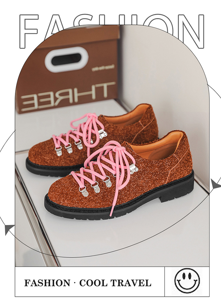 2024秋の英倫風カジュアルな丸い頭が毛皮のダービー靴をひっくり返します。
