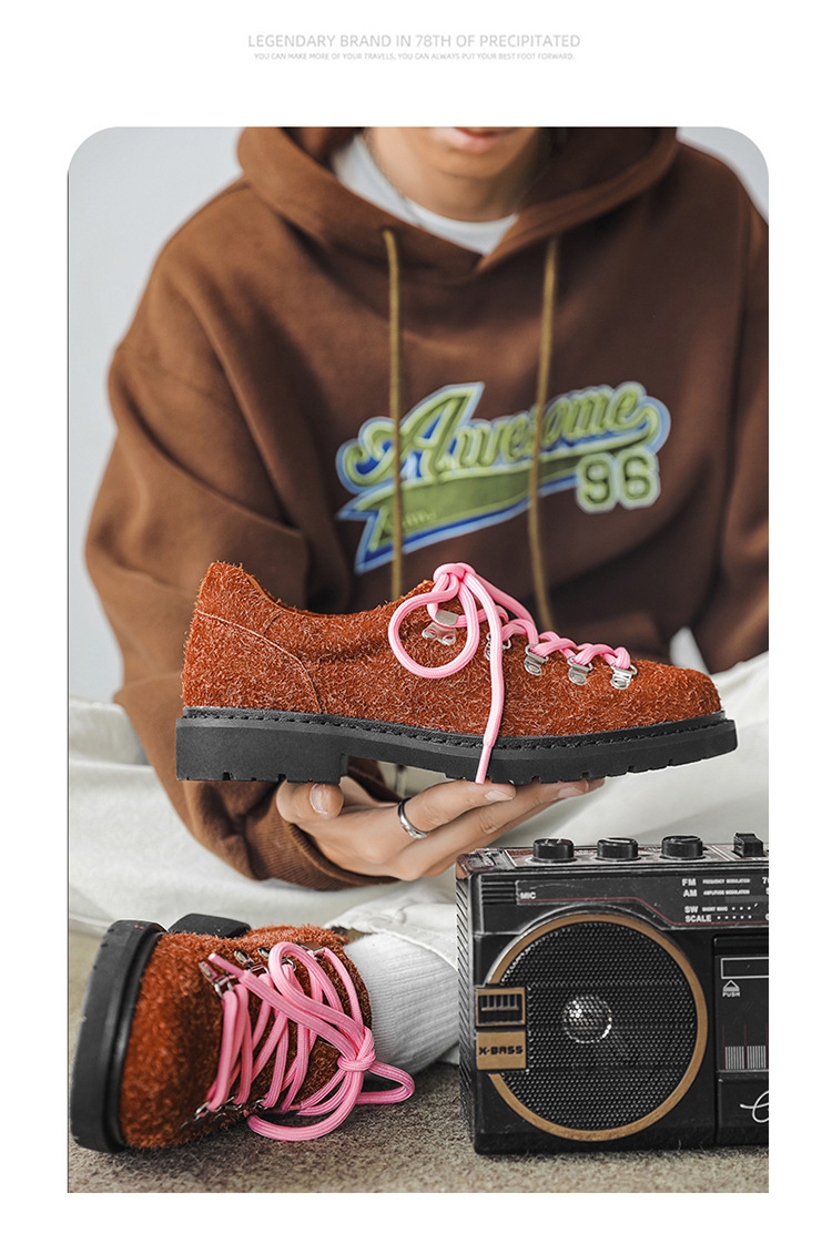 休闲登山德比鞋男街头翻毛皮潮男鞋子英伦风2025新款圆头小皮鞋男