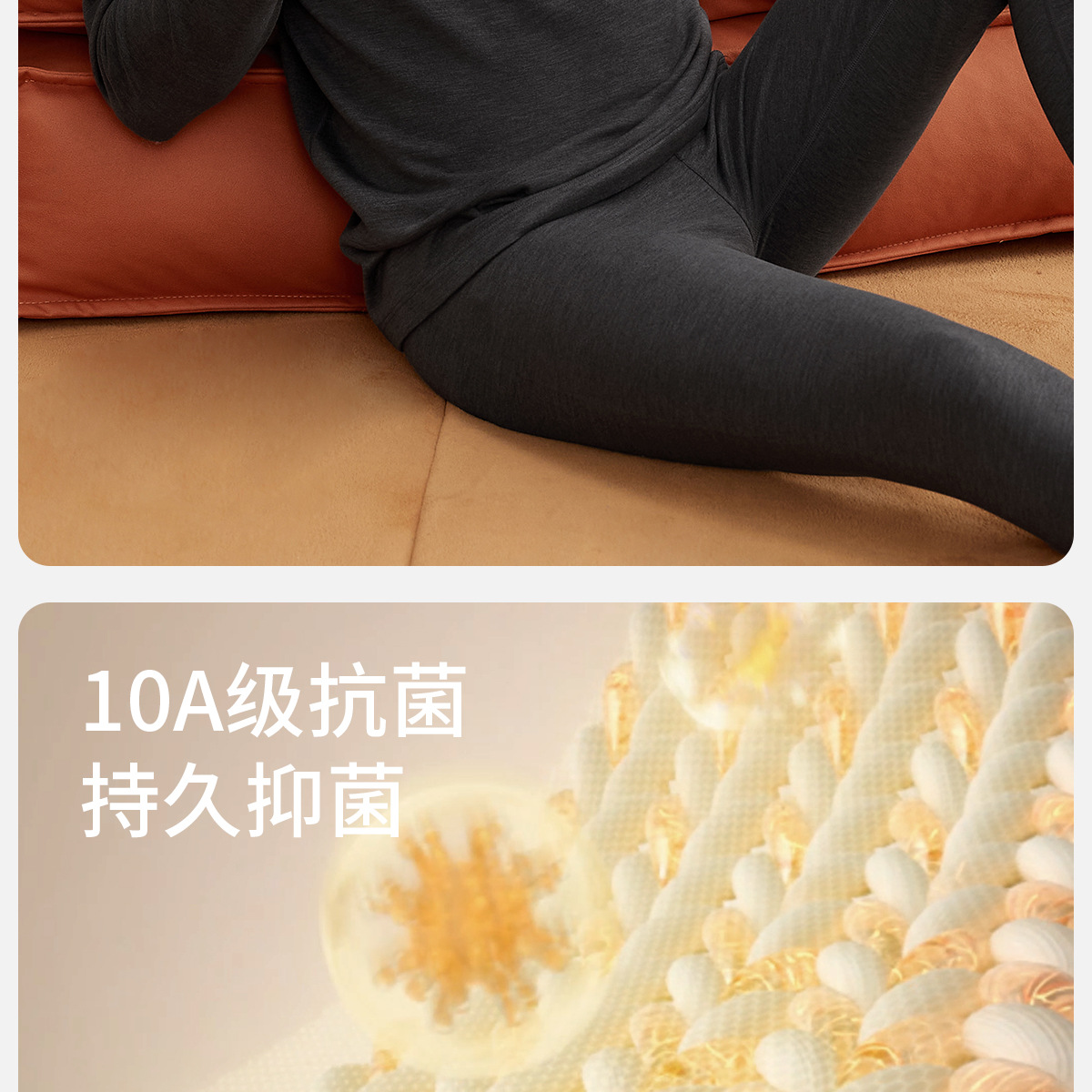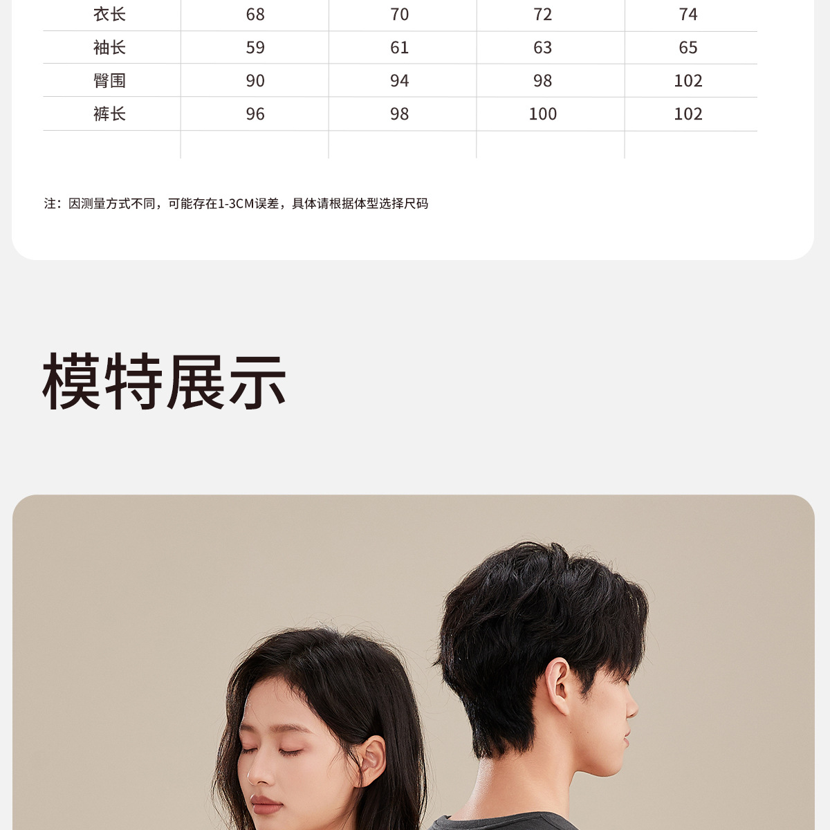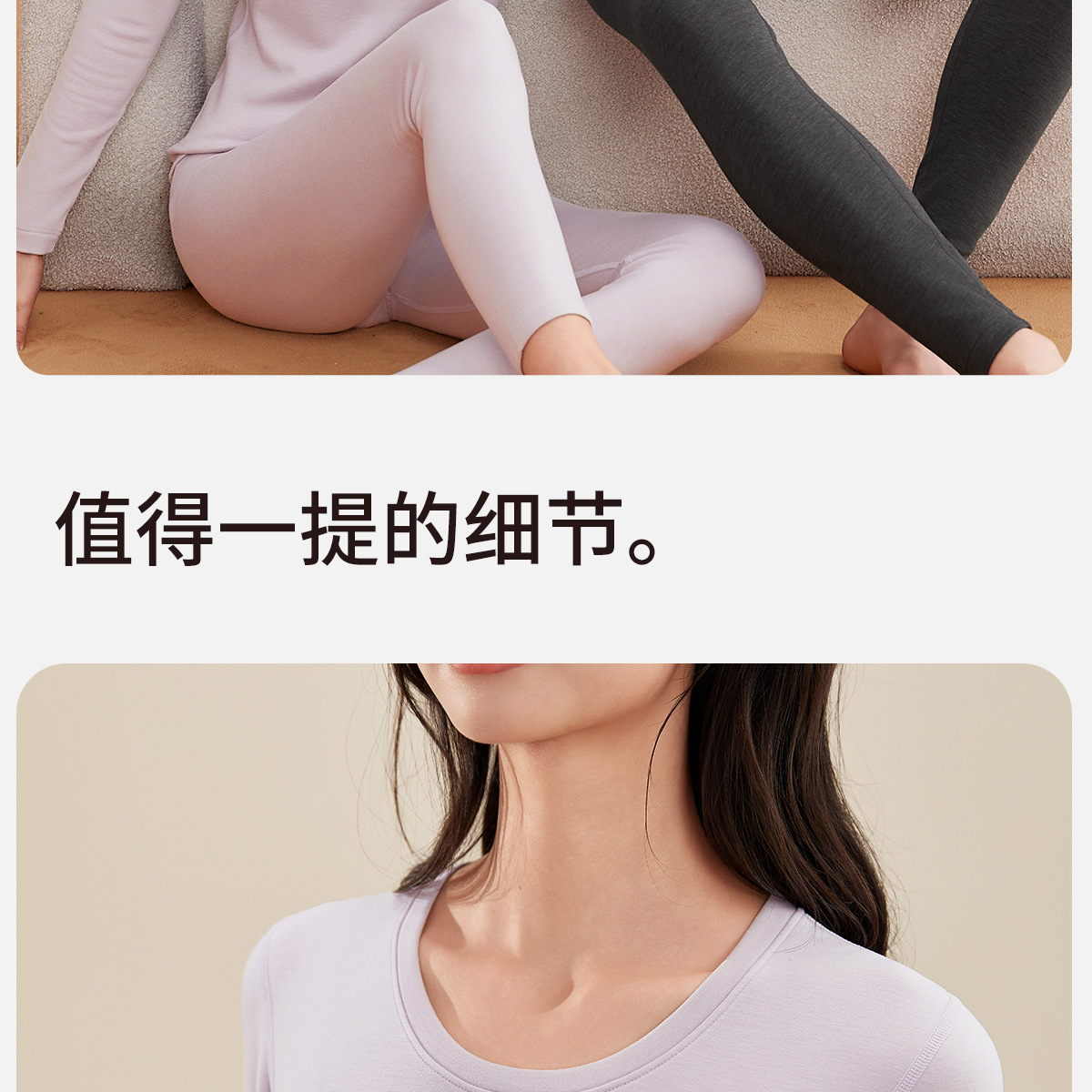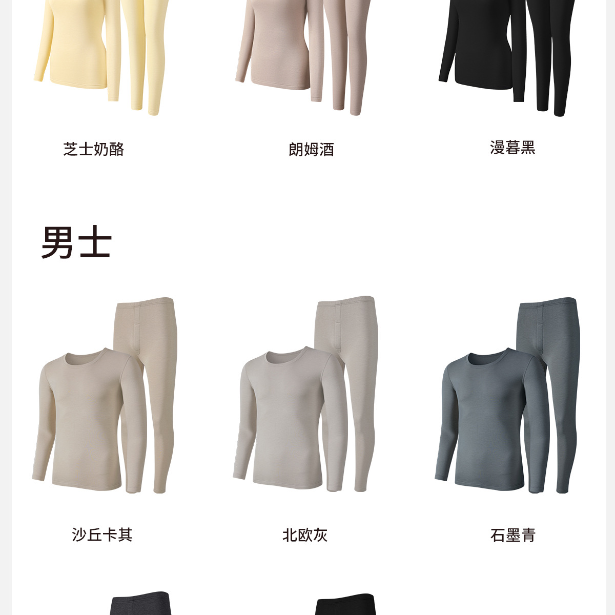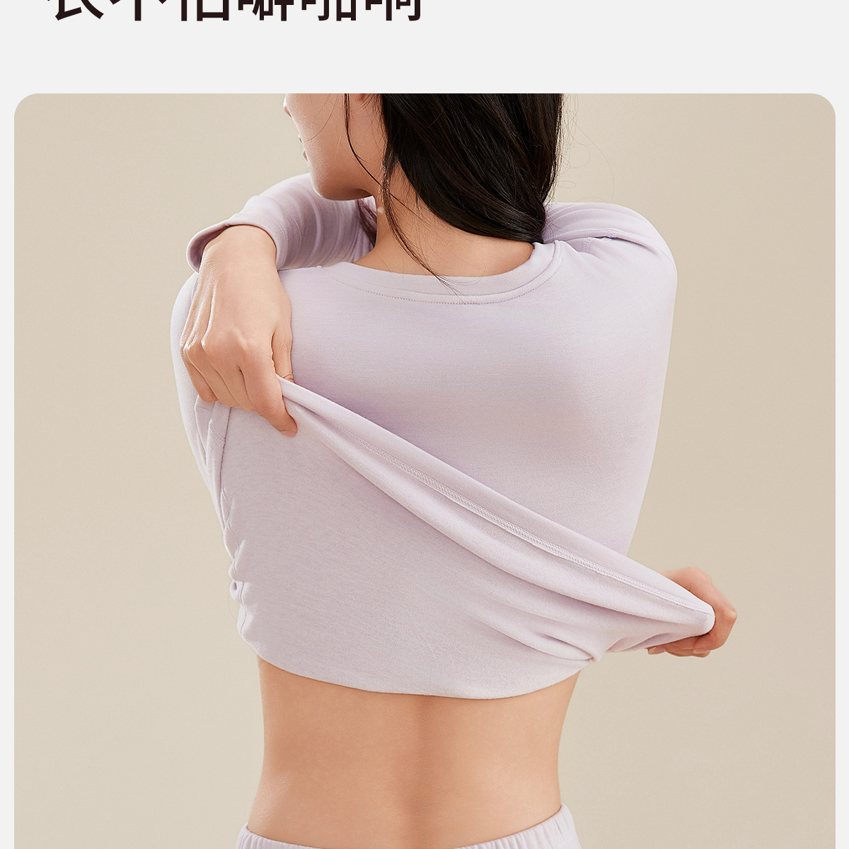300g/㎡加厚德绒保暖套装,里层磨绒,更保暖。含羊毛、莫代尔适合冬季贴身穿。面层蚀毛工艺,不易粘毛、不易起球,10A抗菌防螨,更健康。蚕丝蛋白滋养,更适合冬季。