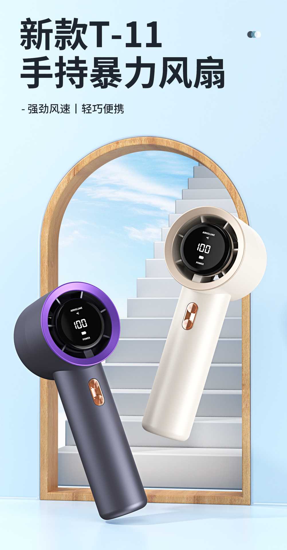 2025跨境新款T11高速手持小风扇 USB迷你便携式数显无叶涡轮风扇