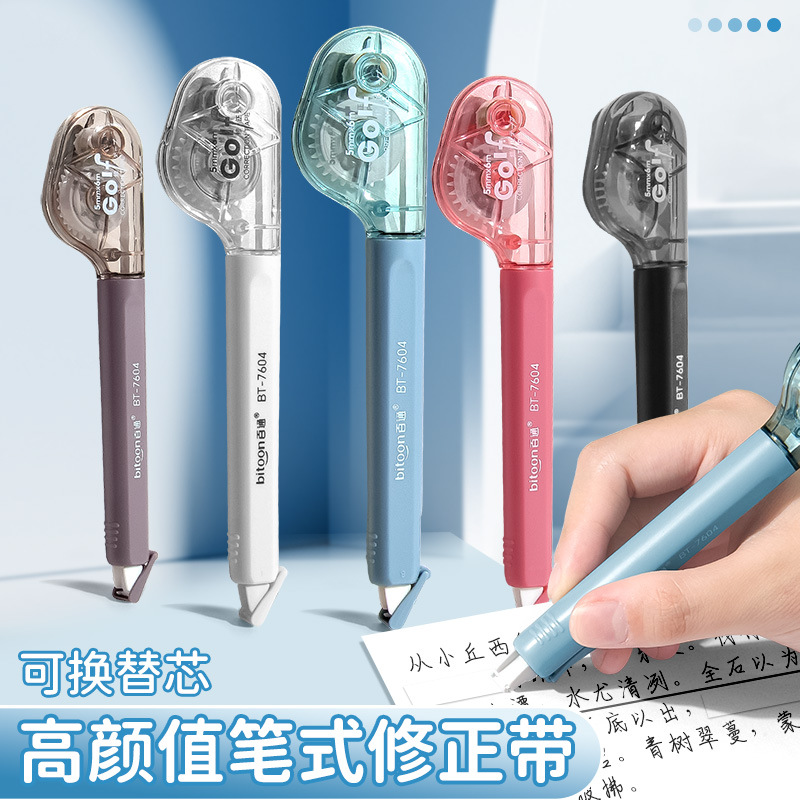 笔形修正带学生专用大容量笔型改正带可替换芯创意笔式涂改带批发
