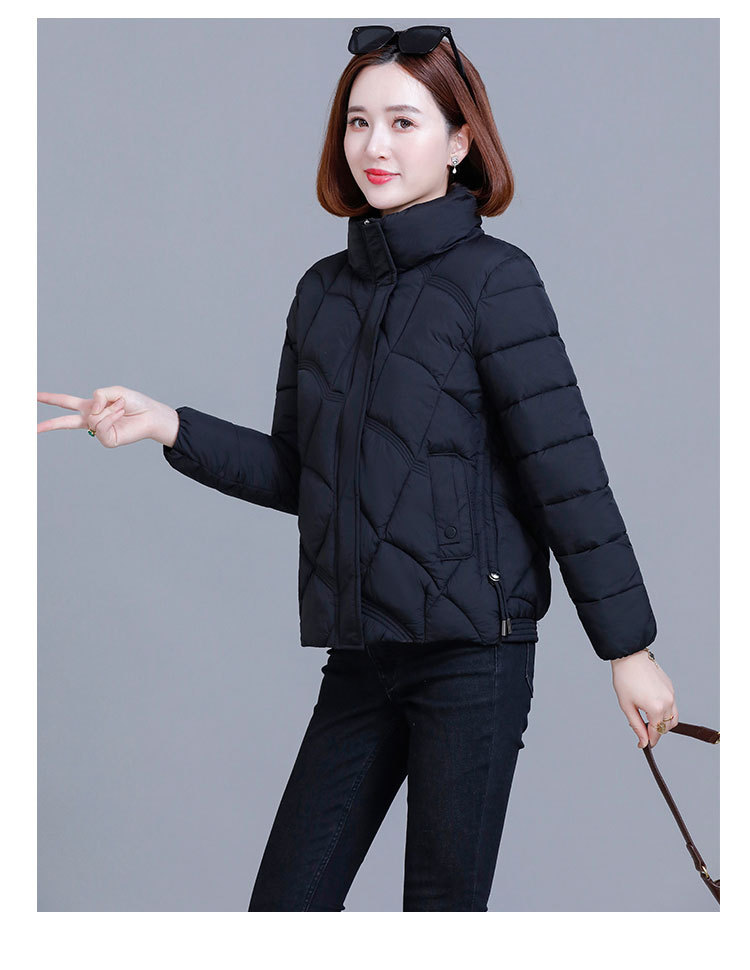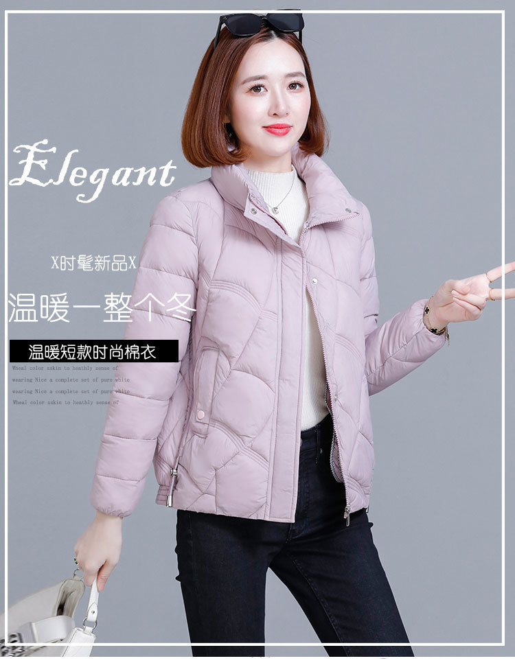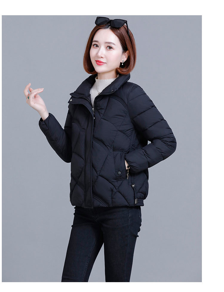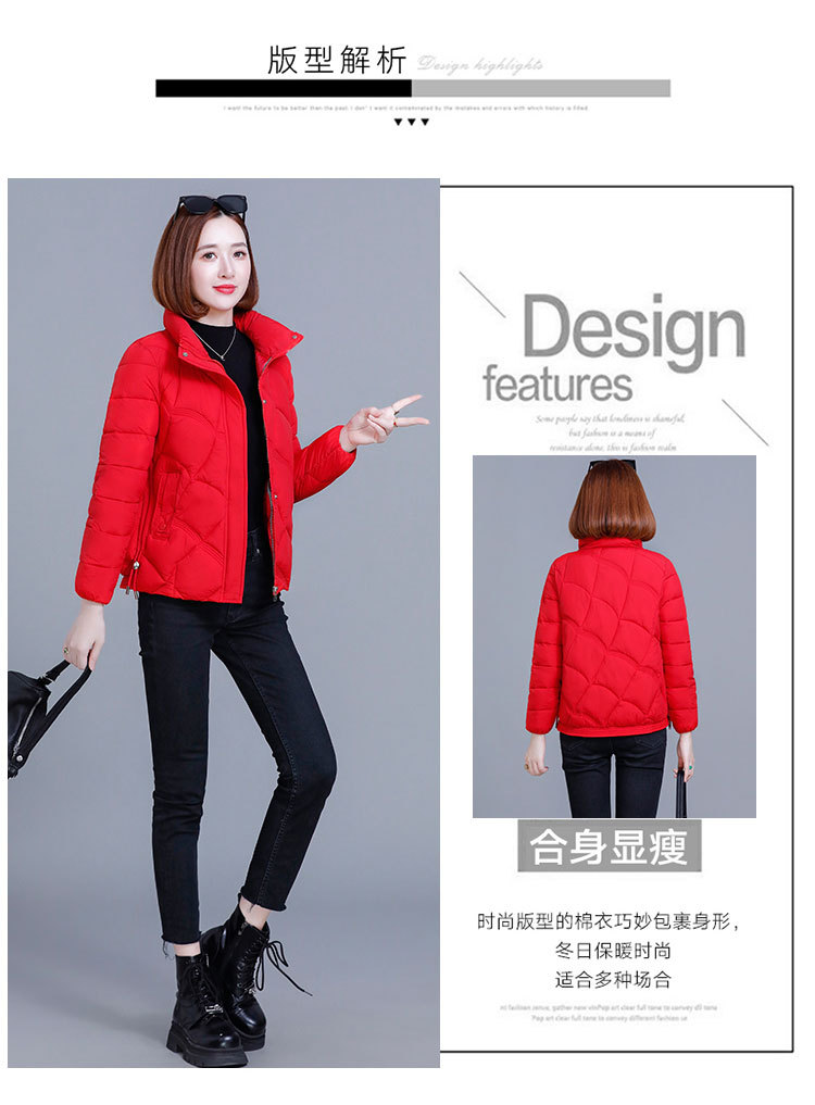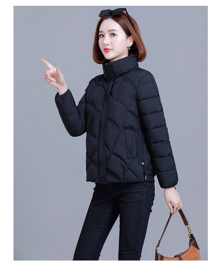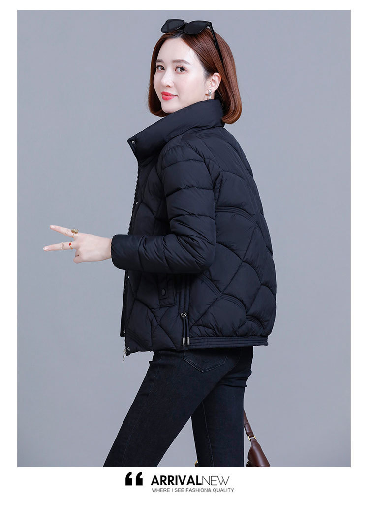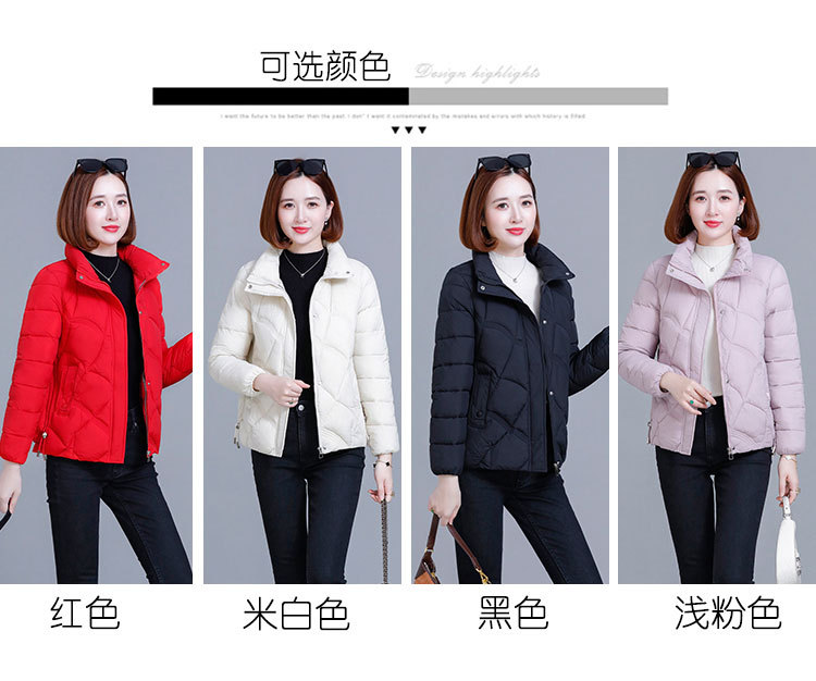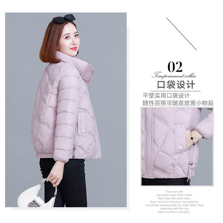 綿の服の冬の短いタイプの女性の2024新型の綿の服の韓国版のファッションは厚くて薄い保温の綿入れの立襟のコートを厚くします。