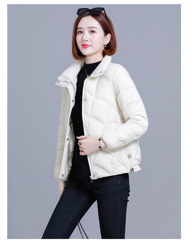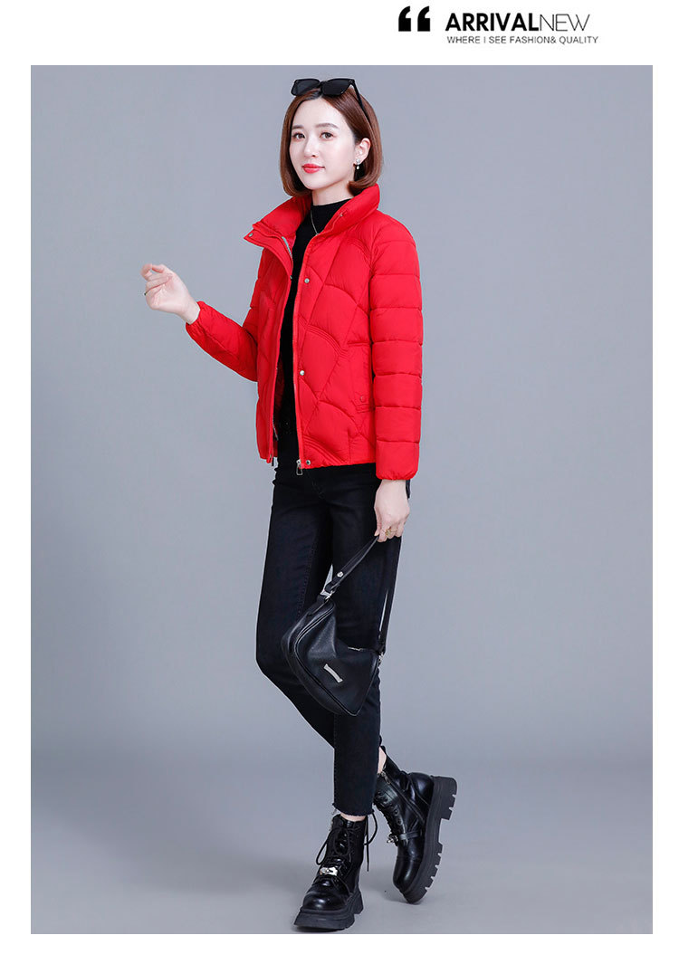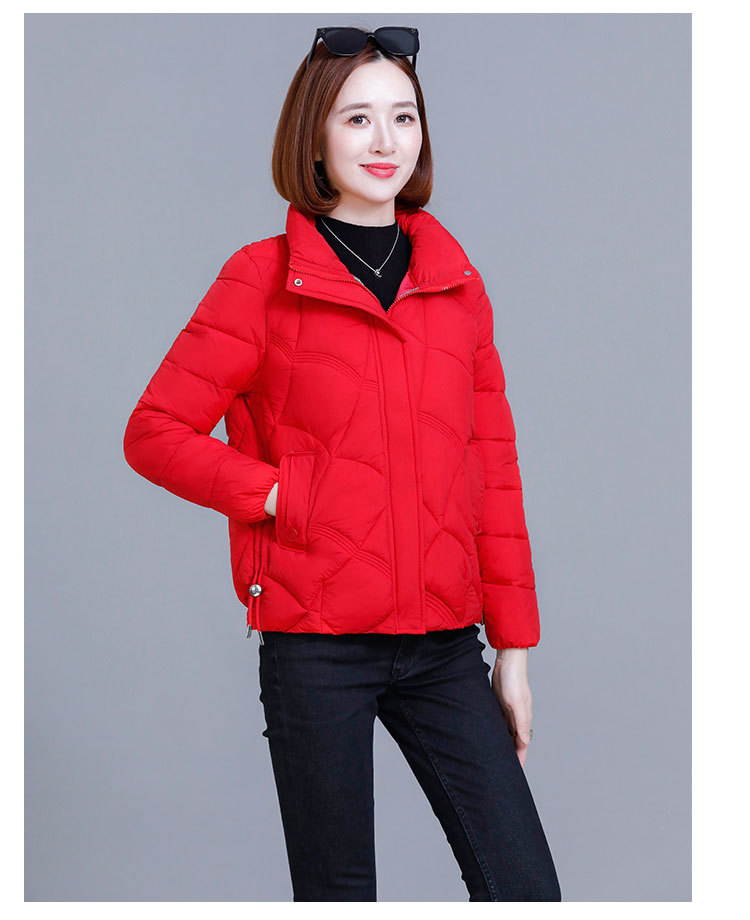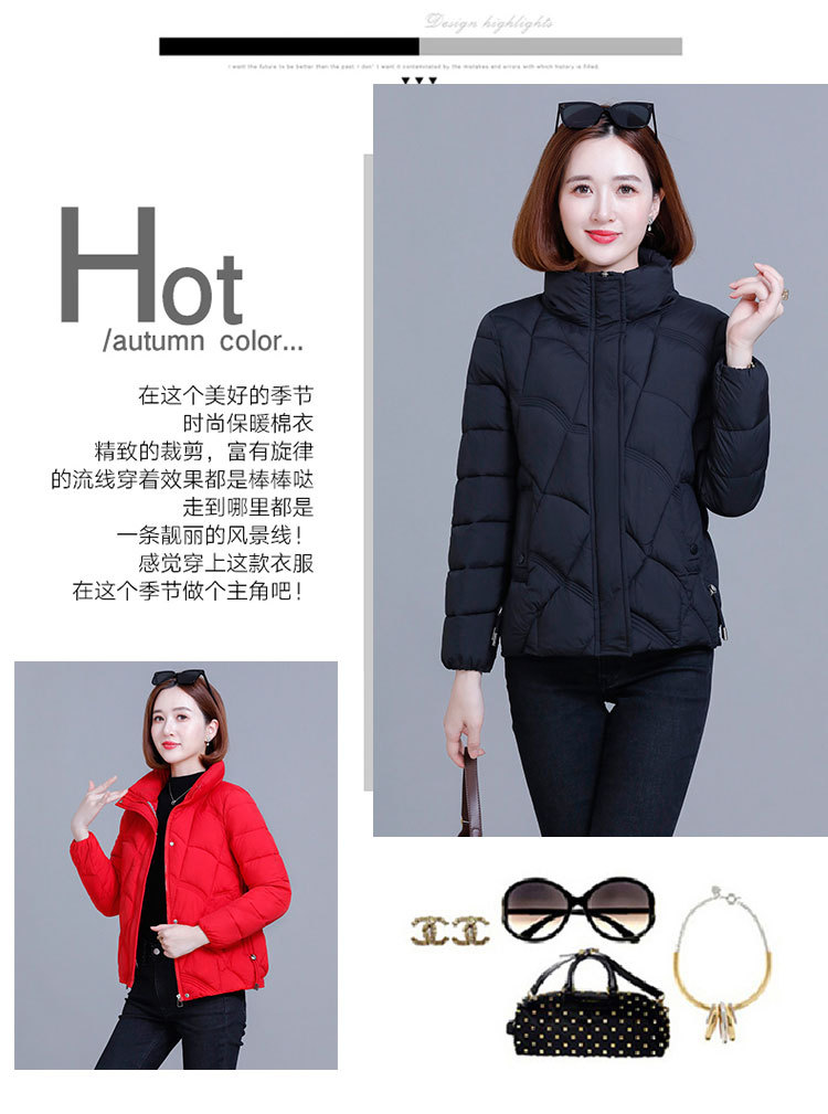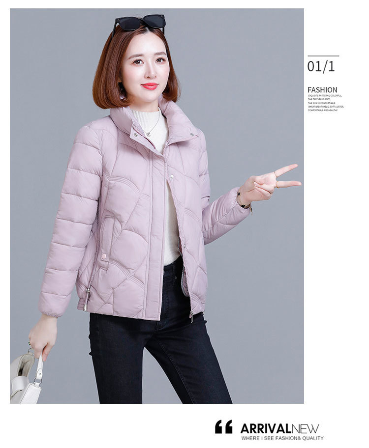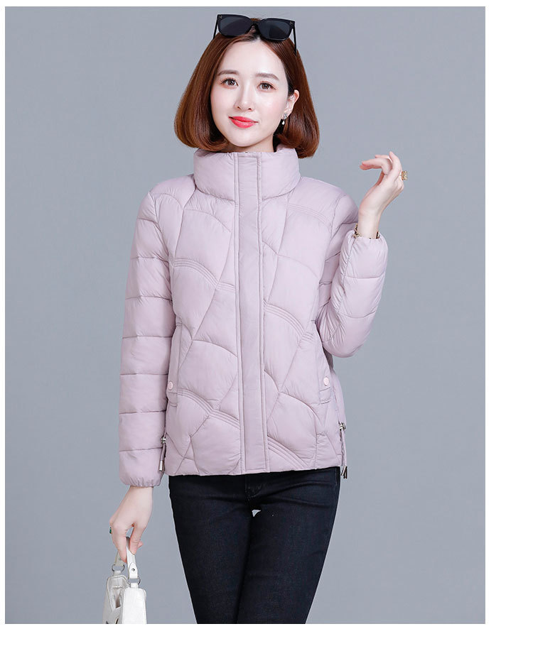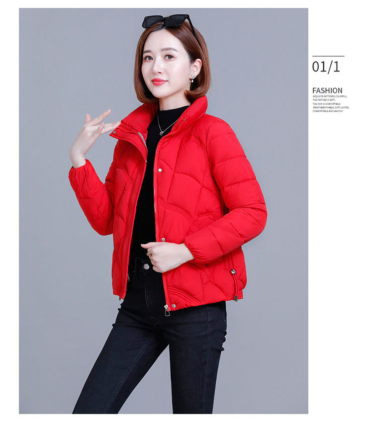 綿の服の冬の短いタイプの女性の2024新型の綿の服の韓国版のファッションは厚くて薄い保温の綿入れの立襟のコートを厚くします。