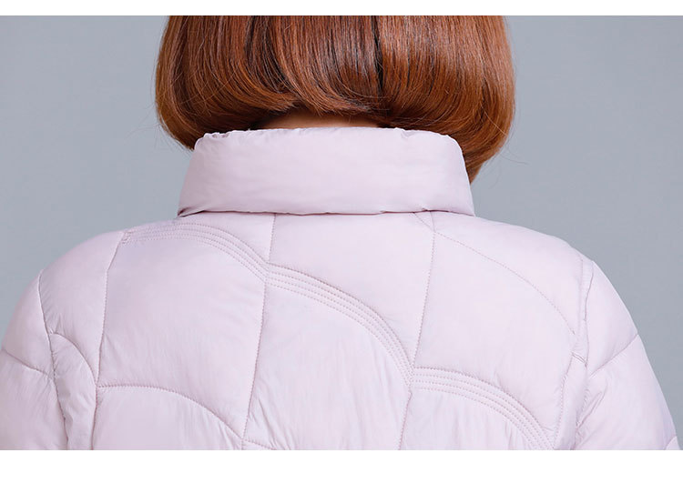内胆の短い秋冬の綿入れの家の外の新型の薄い羽毛の綿入れの上着のお母さんの保温の襟がない上着の修身