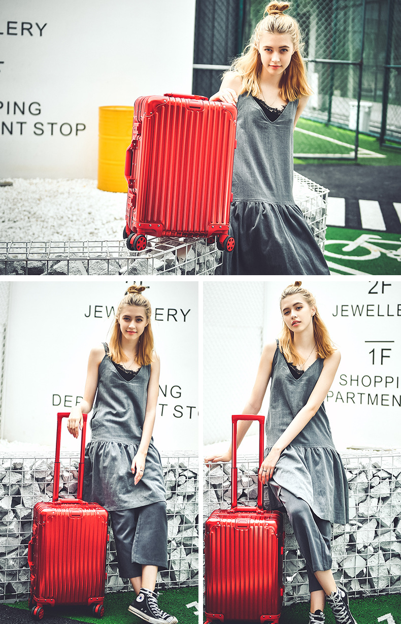 ドイツ製スーツケース、オールアルミニウムマグネシウム合金製トロリーケース 26inch、落下防止、男性用レッド高級スーツケース、女性用20インチ搭乗ケース