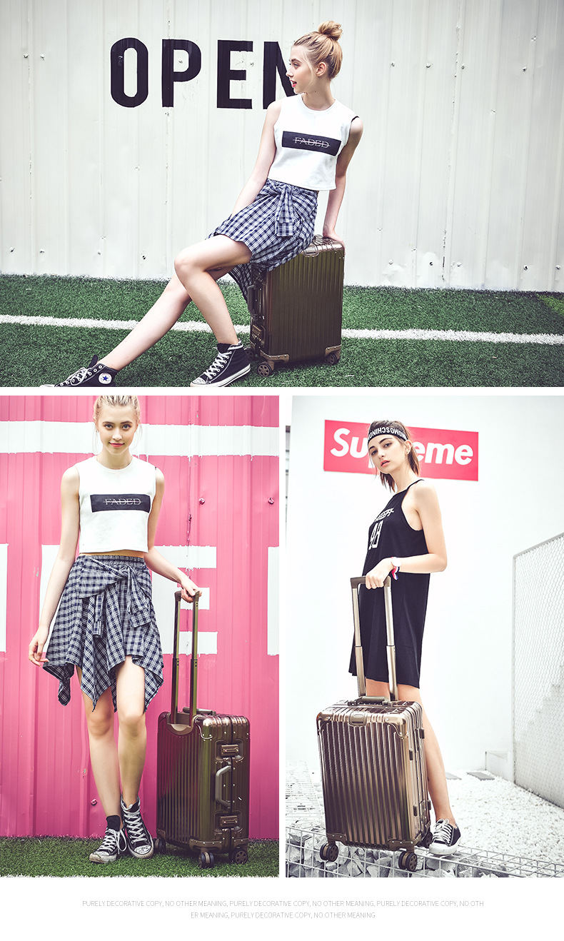 航空级铝镁合金 行李箱采用铝镁合金,质地硬,重量较重
