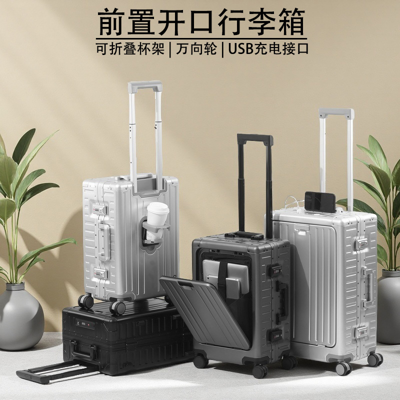 ビジネスフロントオープンスーツケース女性小型20インチ搭乗軽量スーツケースカップホルダー24スーツケース男子学生