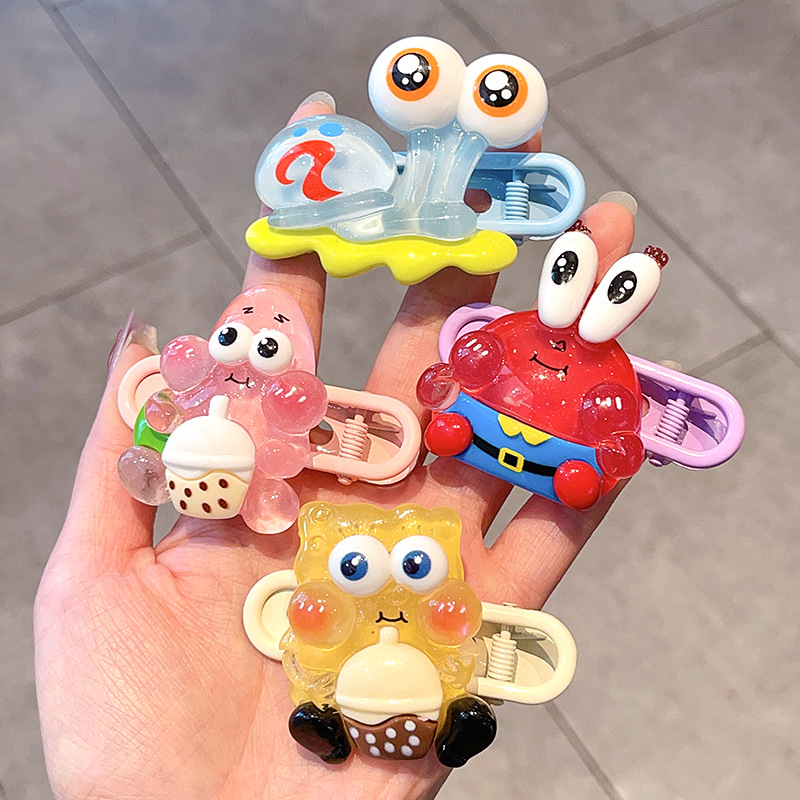 子供のスポンジの赤ちゃんのヘアピンの女の子は大星のカニの社長の頭を派遣して赤ちゃんのタコの兄のヘアピンの女の子の前髪を飾ります。